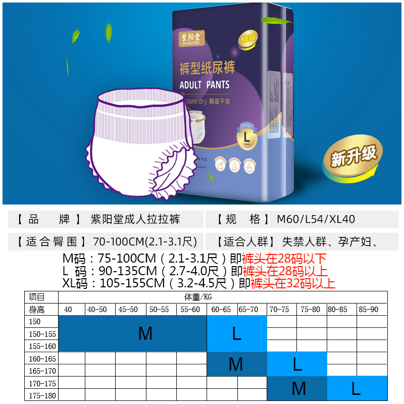 天猫紫阳堂 成人拉拉裤老人纸尿裤老年尿不湿成年尿片安心裤M60/L54
