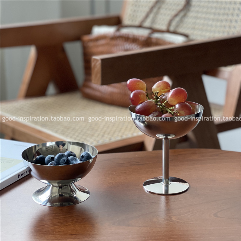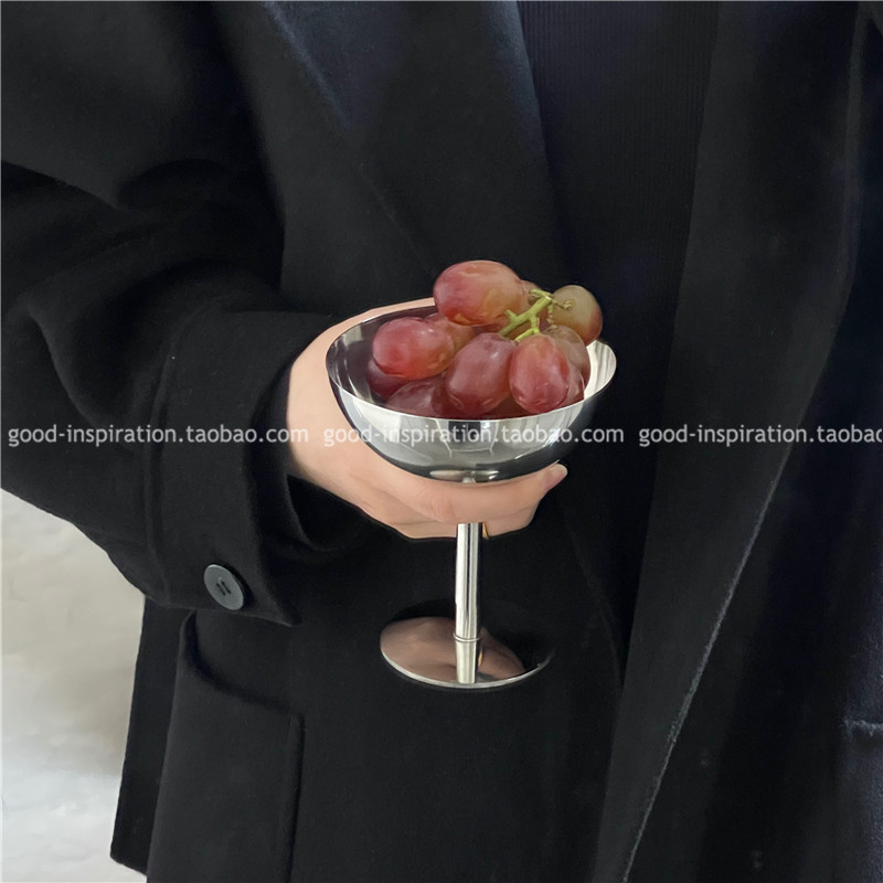 淘宝不锈钢甜品碗冰激凌杯 高脚洋酒创意304韩国ins美食博主拍照道具