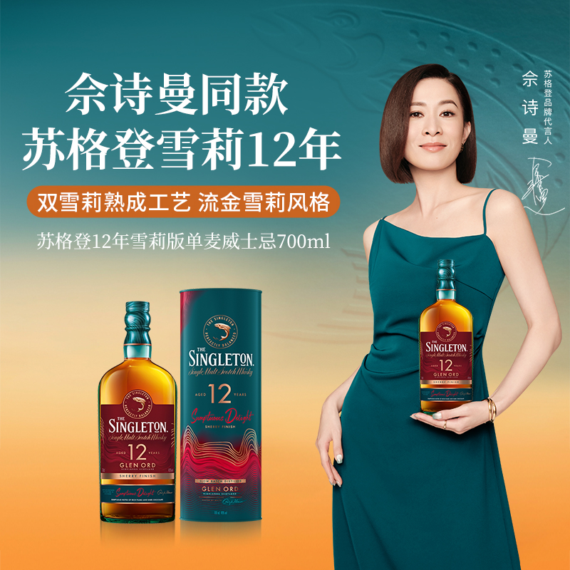 天猫【佘诗曼同款】苏格登12年雪莉版单一麦芽苏格兰威士忌700ml洋酒