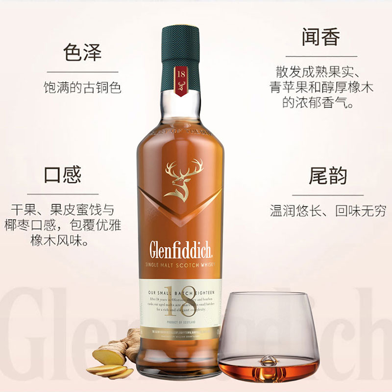 天猫Glenfiddich格兰菲迪18年苏格兰单一麦芽威士忌英国进口洋酒