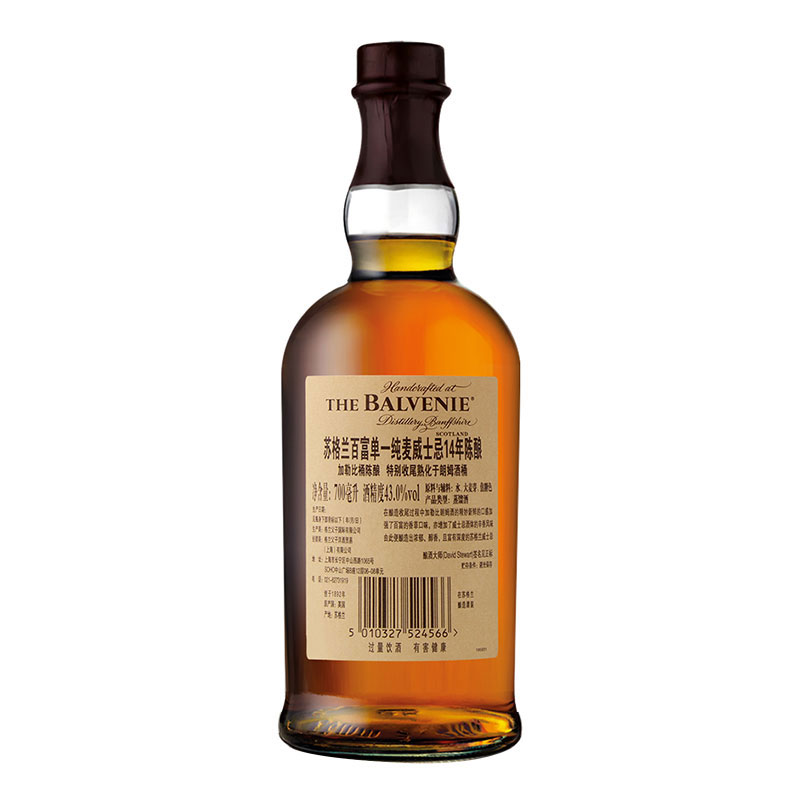 天猫The Balvenie百富14年加勒比桶单一麦芽苏格兰威士忌 英国洋酒