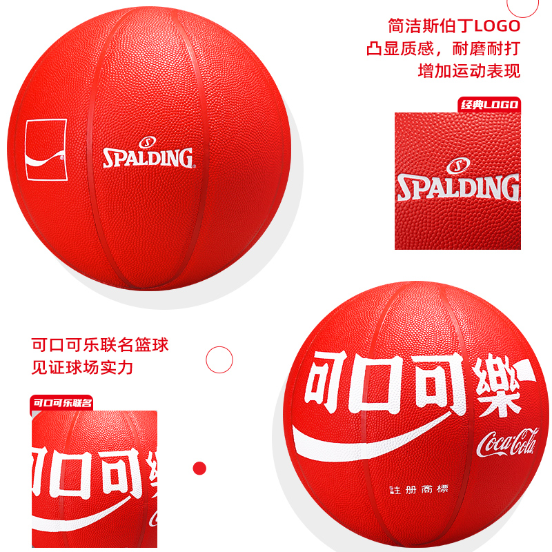 天猫Spalding斯伯丁可口可乐联名款官方正品酷炫7号PU篮球室内外通用