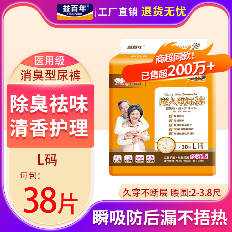 益百年成人纸尿裤是专为老年人和行动不便的人士设计的护理用品。这款老人尿不湿,老人用尿裤大号加大码,适合男女老年人使用。采用高质量材料制成,具有良好的吸水性和透气性,让使用者感到舒适和干爽。这款尿布湿设计合理,易于穿戴和更换,方便照顾者操作。益百年成人纸尿裤旨在提供全方位的护理体验,为老年人和需要特殊照顾的人士提供贴心呵护,帮助他们享受健康、快乐的生活。选择益百年成人纸尿裤,为家人的健康保驾护航。