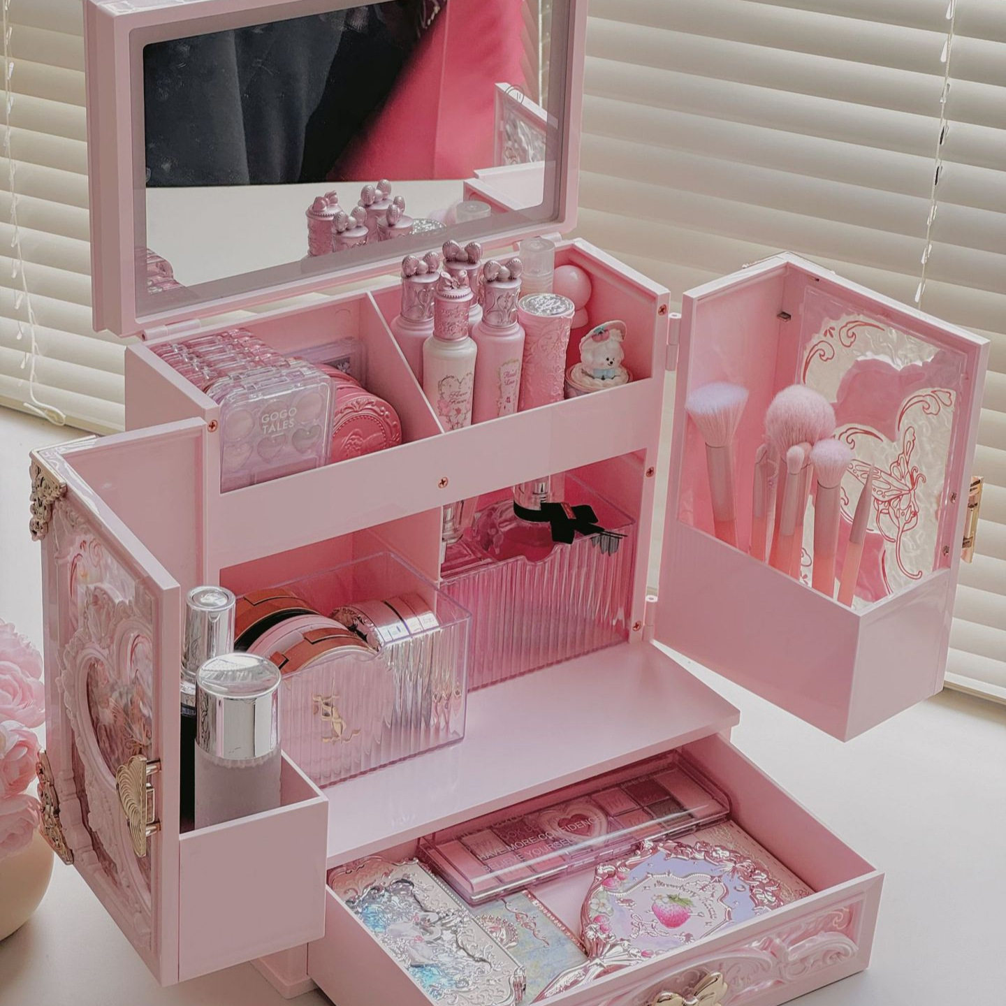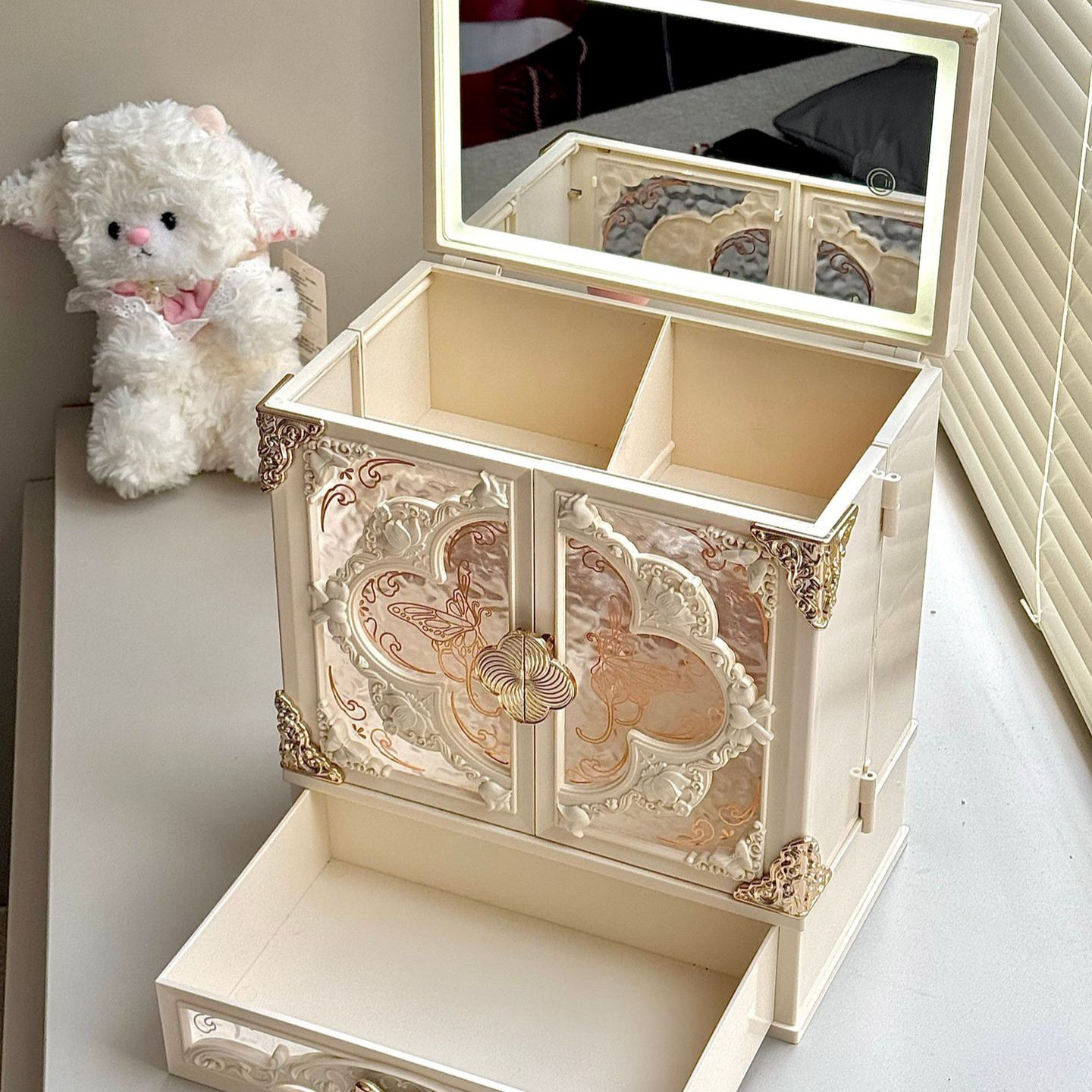 淘宝每遇蝶恋花亚克力彩妆套装大容量收纳盒LED三色美妆镜送女生闺蜜