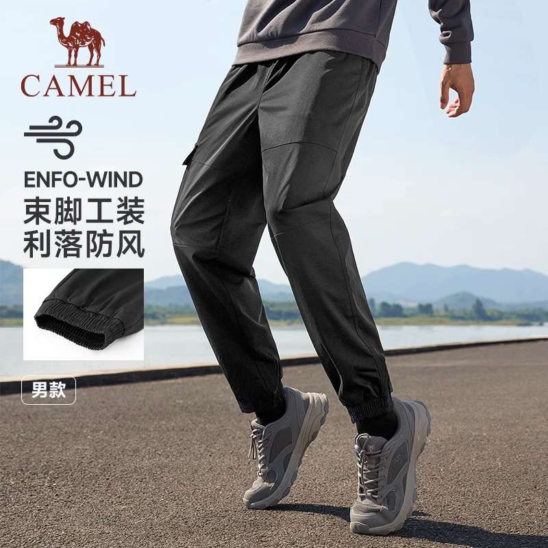 天猫[机能]骆驼运动工装裤男2025春秋防水休闲宽松梭织长裤束脚卫裤女