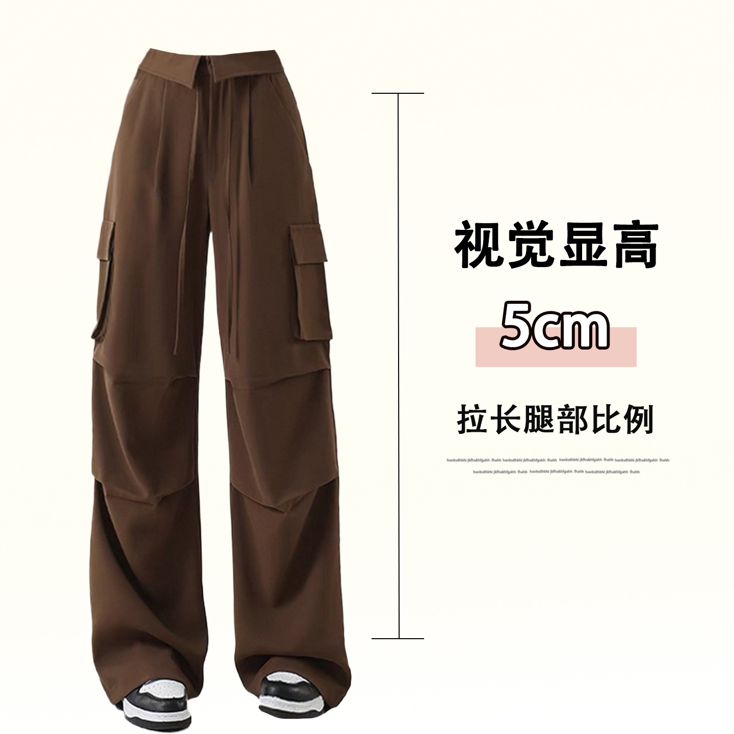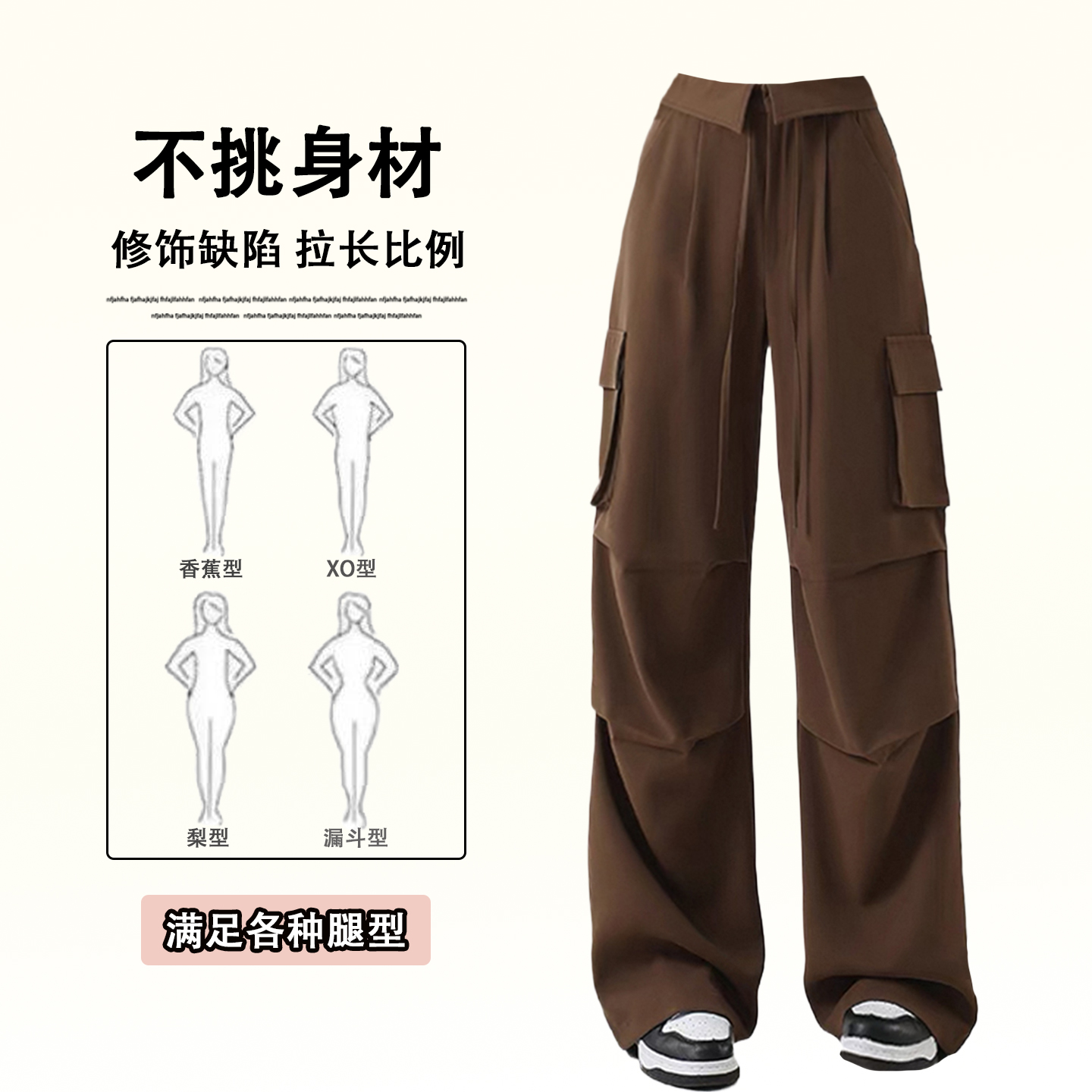 淘宝胖mm大码女装咖色宽松显瘦休闲裤女2025新款垂感百搭阔腿工装裤子