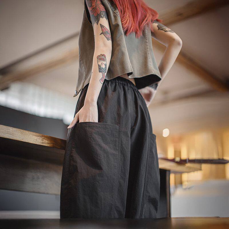 淘Mitaogirl复古多口袋跑步健身工装裤女运动瑜伽裤宽松休闲阔腿裤