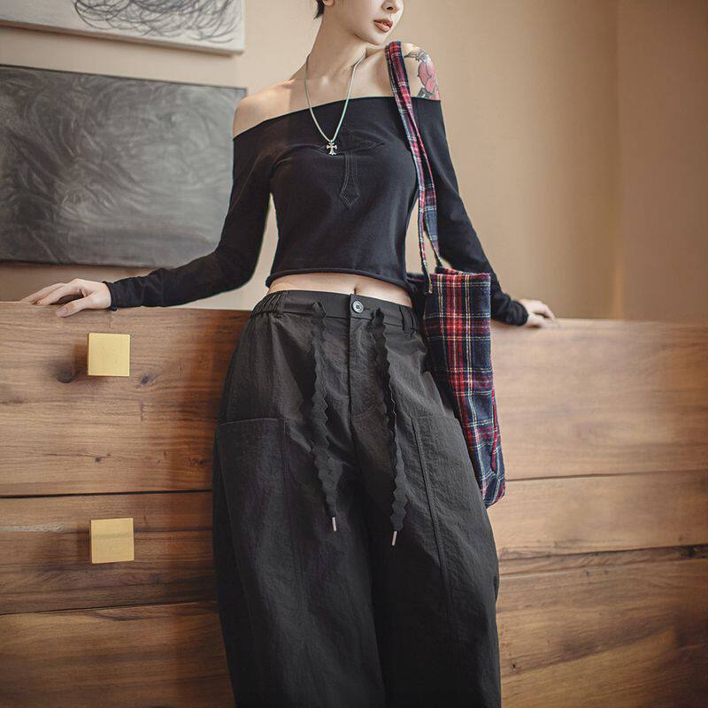 淘宝马登松弛感工装山本弯刀裤显腿长宽松慵懒小个子阔腿裤潮女士秋季