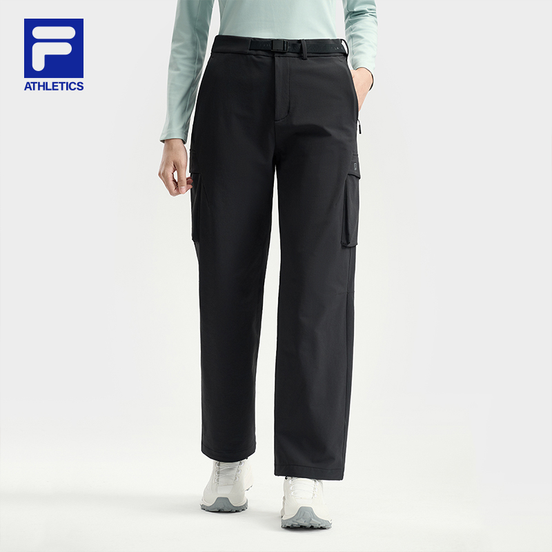 天猫FILA 斐乐官方女士梭织长裤2025冬季新款户外运动简约舒适工装裤