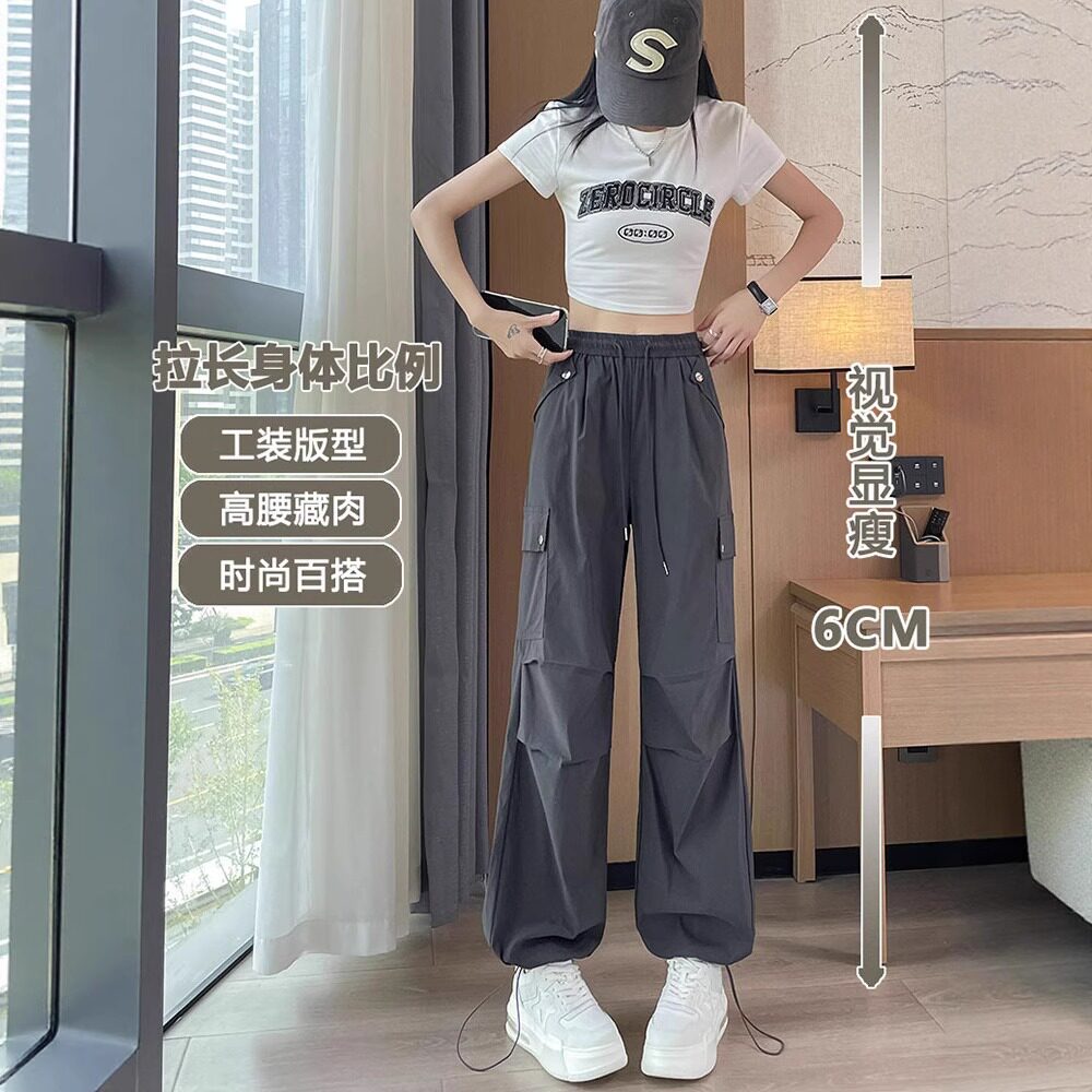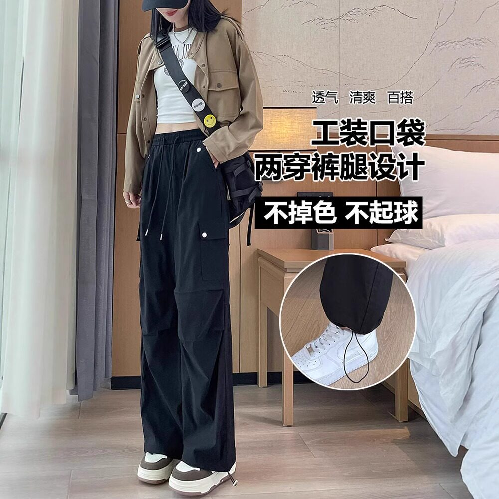 天猫美式甜酷风粉色工装裤女夏季小个子新款登山裤休闲运动降落伞裤子
