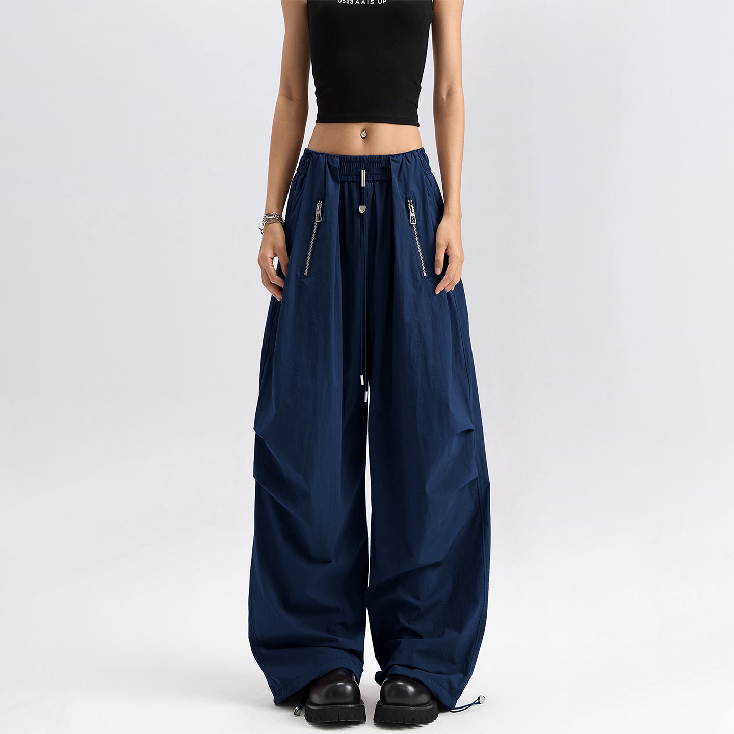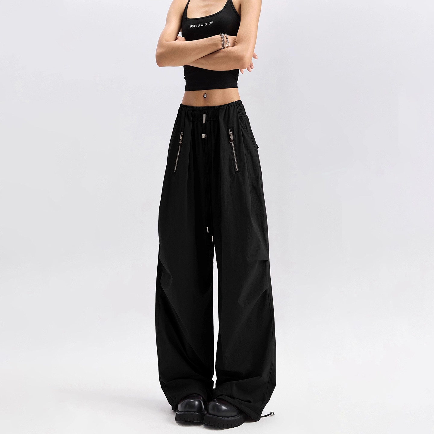 淘大厂订单!户外机能风防泼水弧形分割阔腿抽绳束脚工装裤伞兵裤女