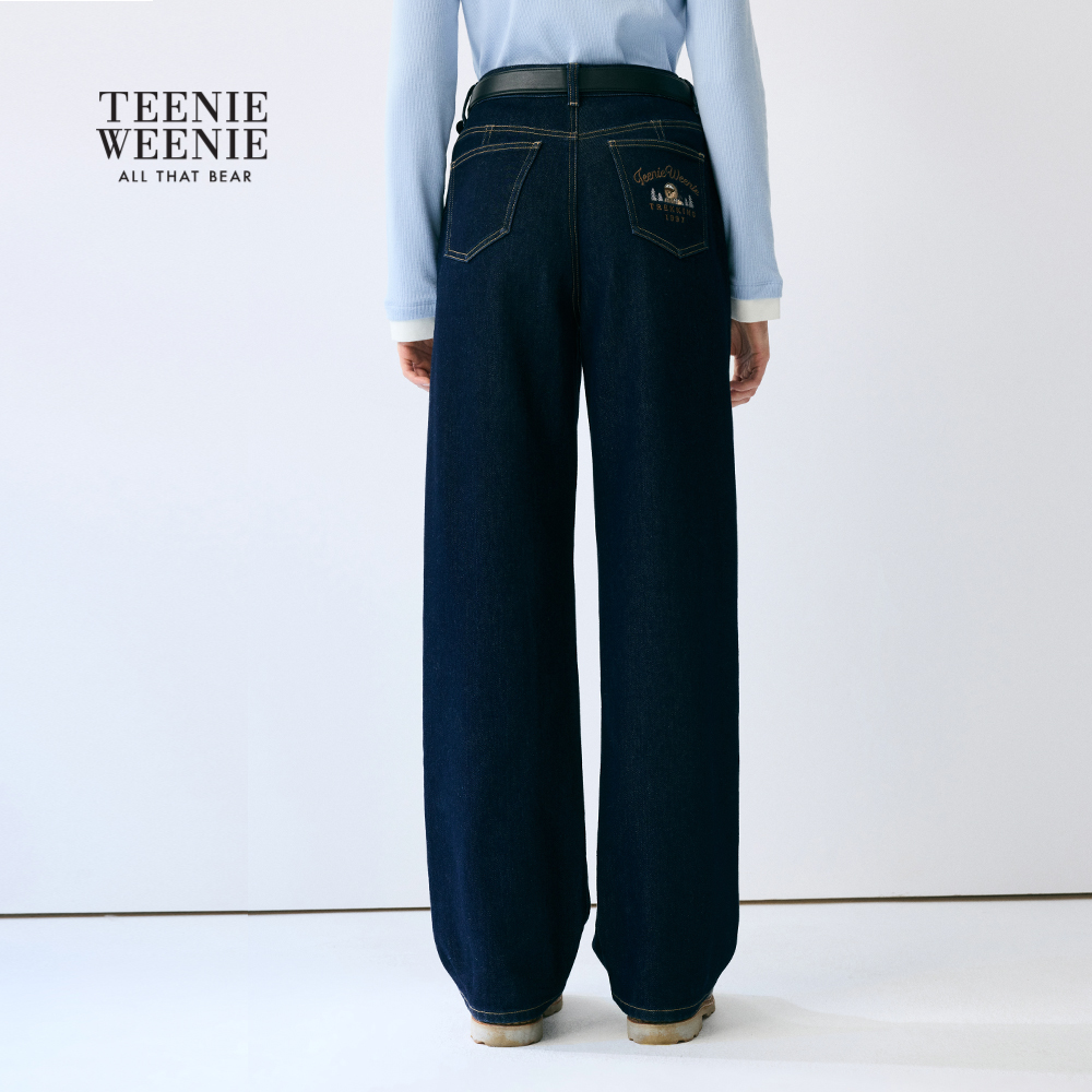 天猫TeenieWeenie小熊女装牛仔裤2025冬季新款简约时尚松弛舒适直筒裤