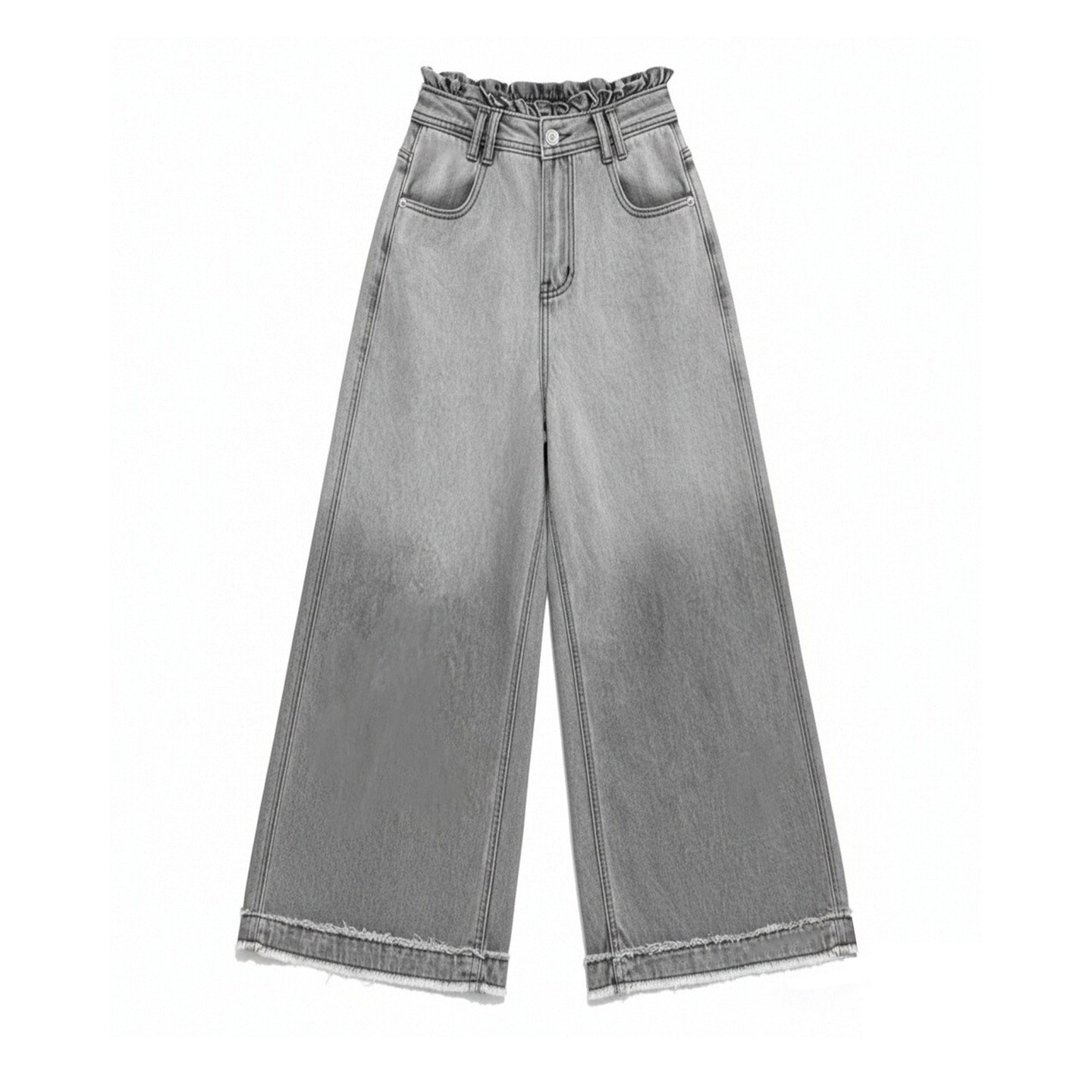MMJC猫猫家加长女裤秋冬水泥灰高腰显瘦阔腿直筒复古做旧牛仔裤女