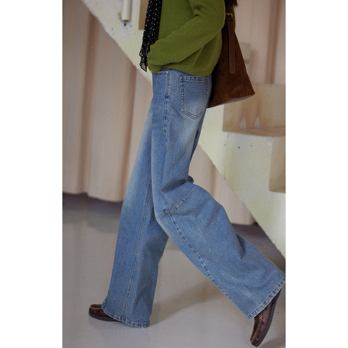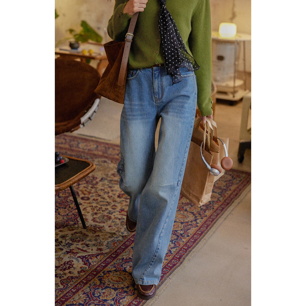 天bash毛晓彤同款秋季法式复古设计牛仔裤女士宽松直筒长裤1E25VADO