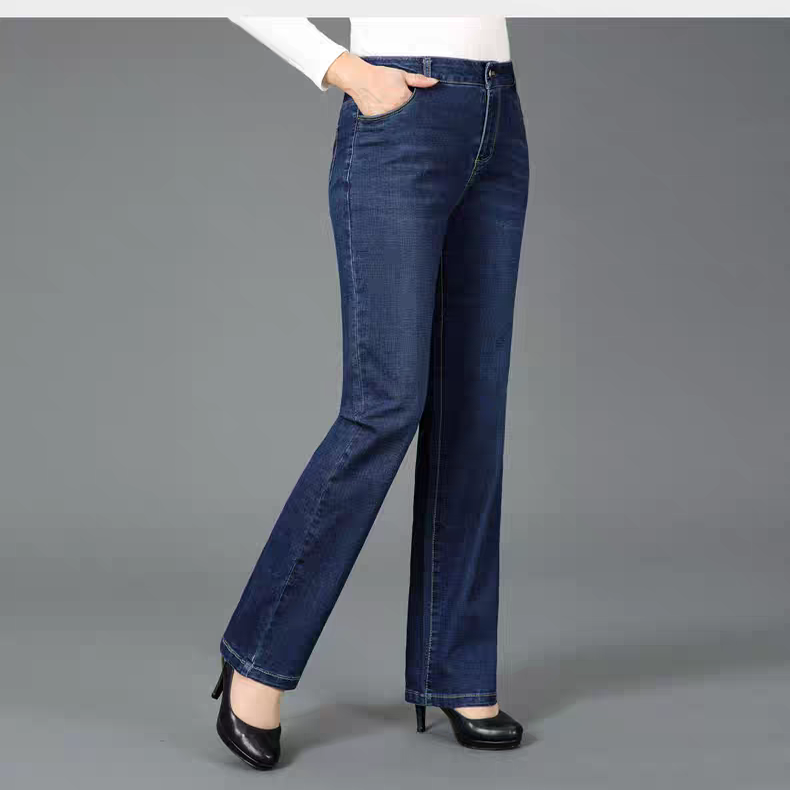 淘宝外贸特大码女装牛仔裤300斤胖MM春季新款欧版高腰弹力直筒裤长裤