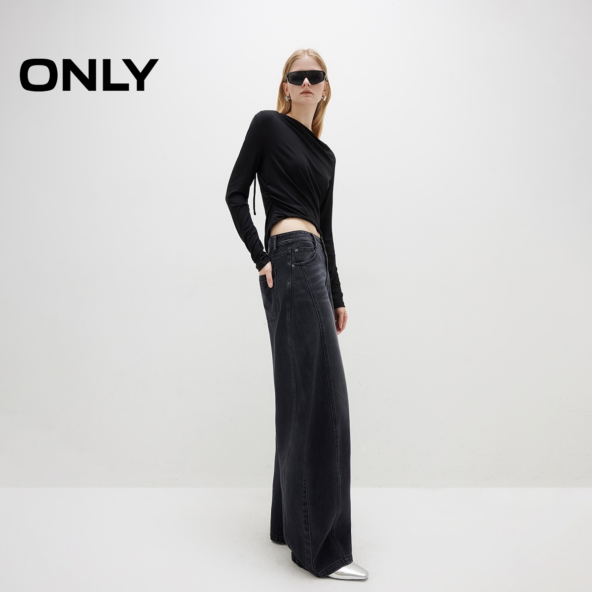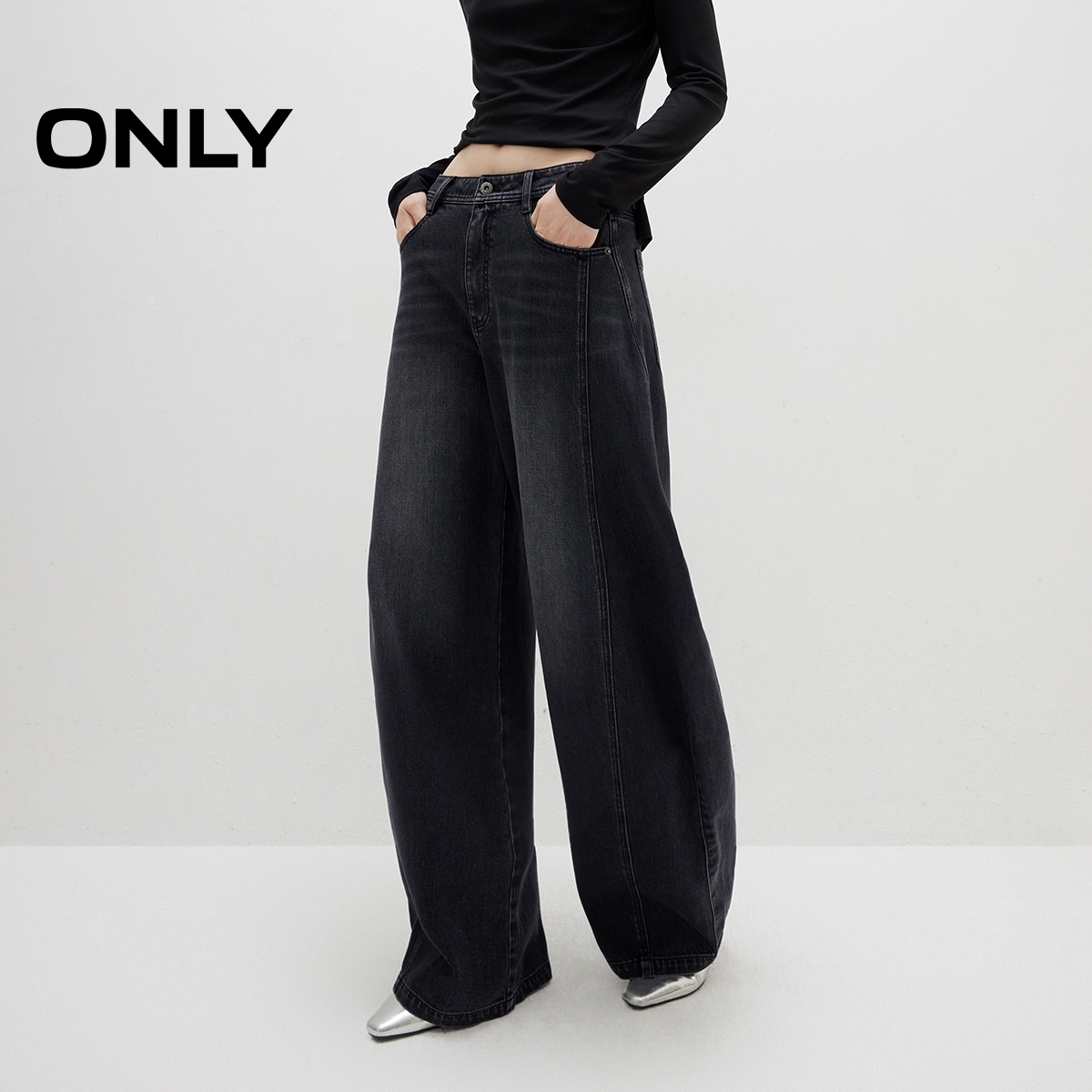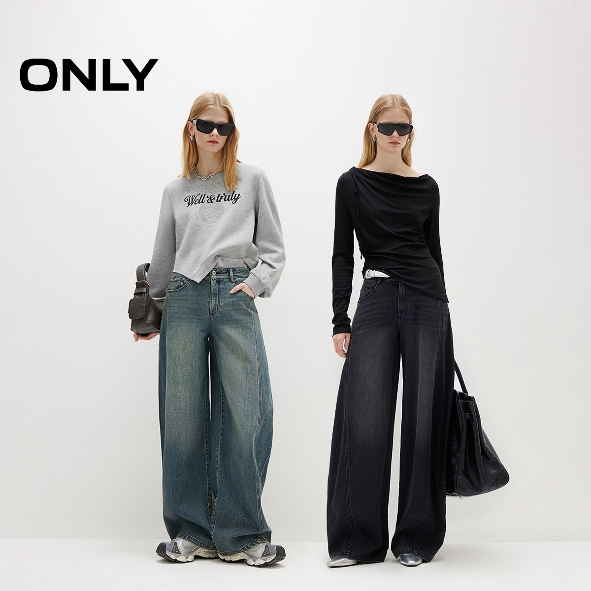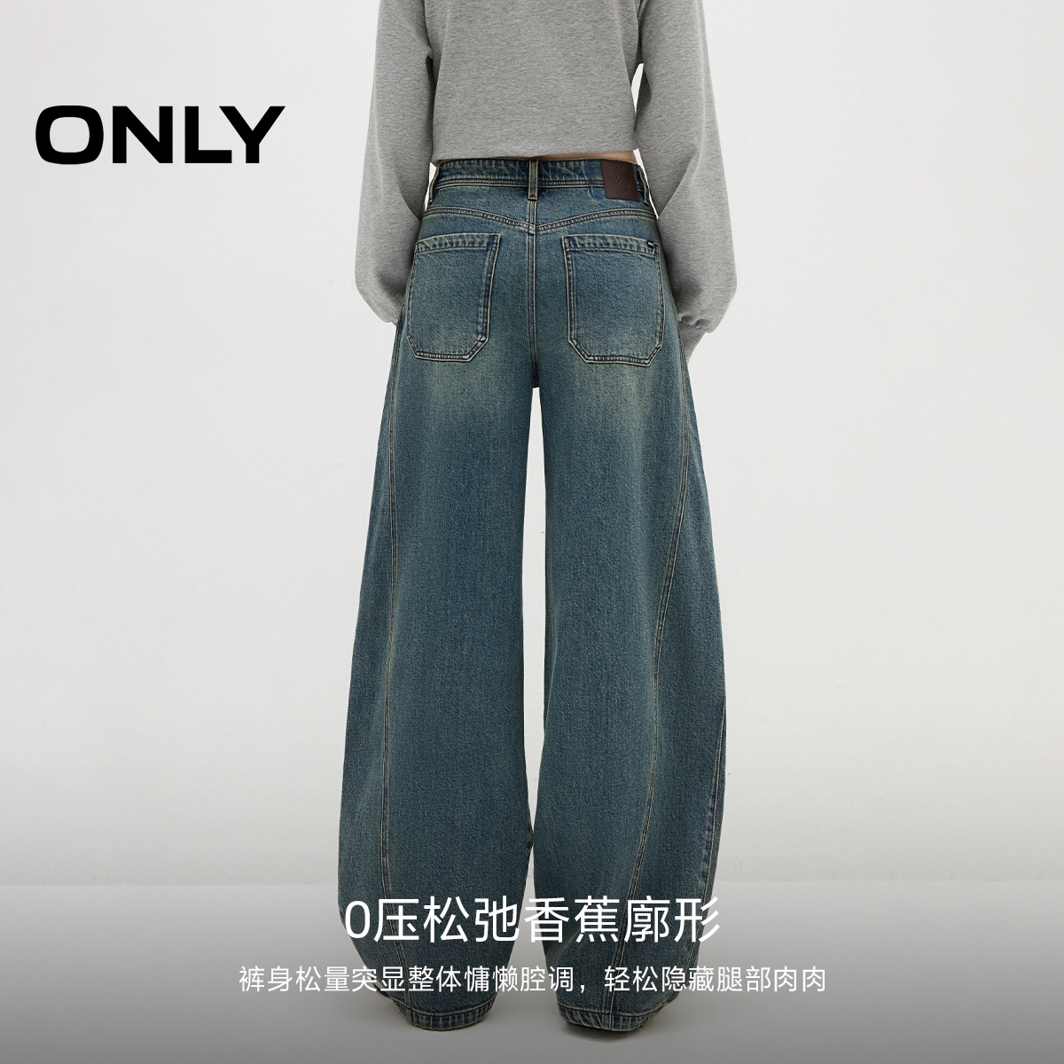 天猫ONLY2025秋冬新款宽松做旧磨白猫须中腰长裤香蕉阔腿裤牛仔裤女
