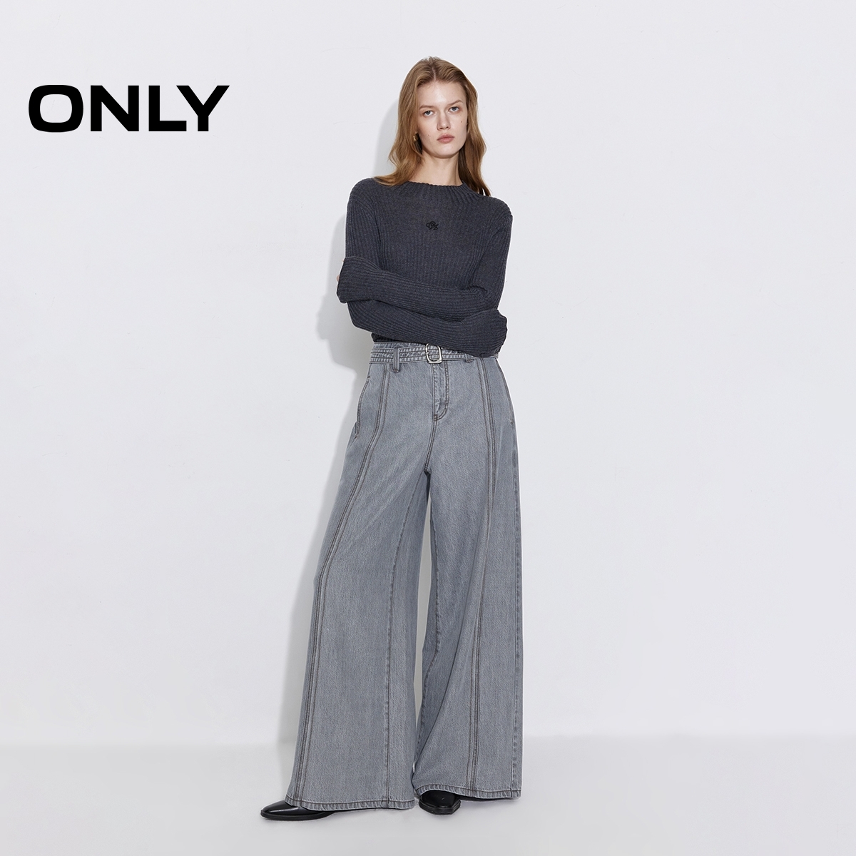 天猫ONLY2026春季新款松弛感可拆腰带细闪光泽感阔腿裤牛仔裤女