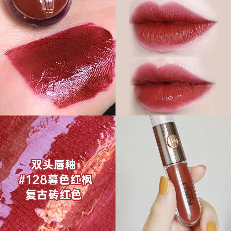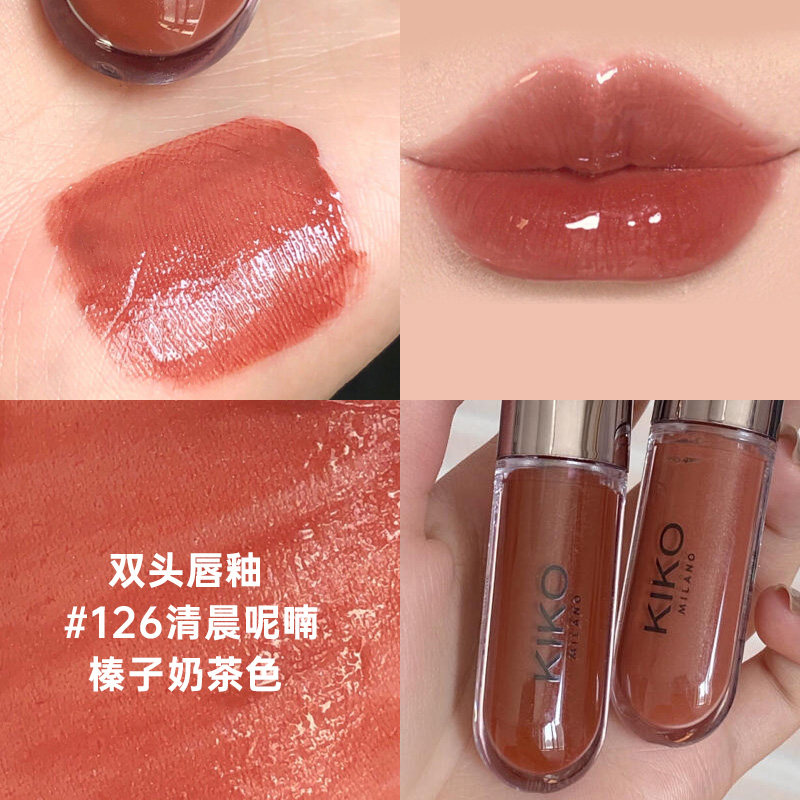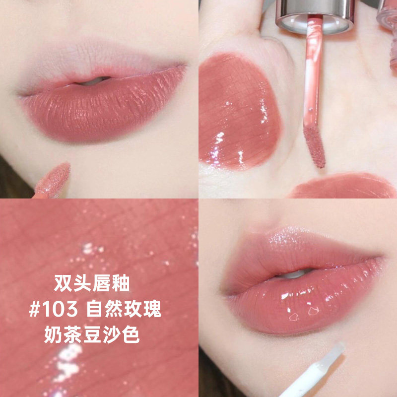 淘宝kiko双头唇釉口红103自然玫瑰奶茶豆沙色水光镜面不沾杯温柔裸妆