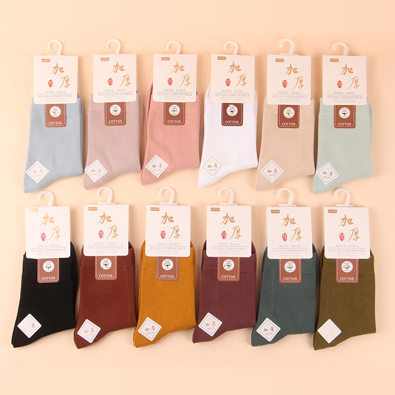 淘宝秋冬加厚女士纯色中筒棉袜加长加厚棉质保暖冬天女士袜子休闲长腰
