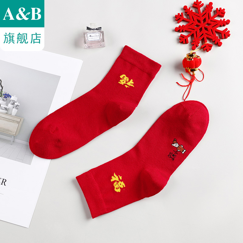 AB袜子女本命年红色女棉袜中筒休闲情侣袜子5641