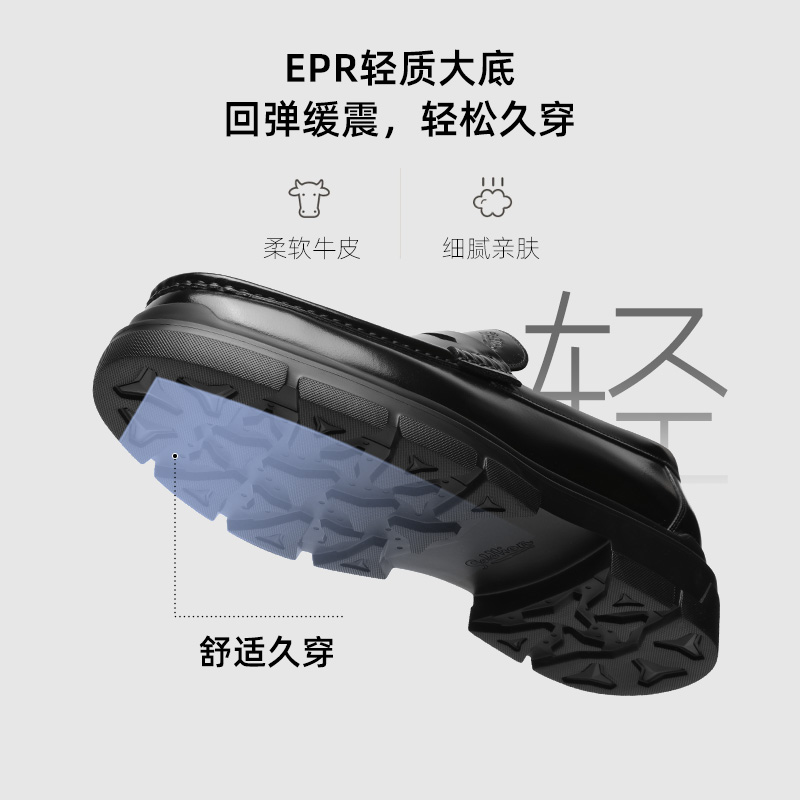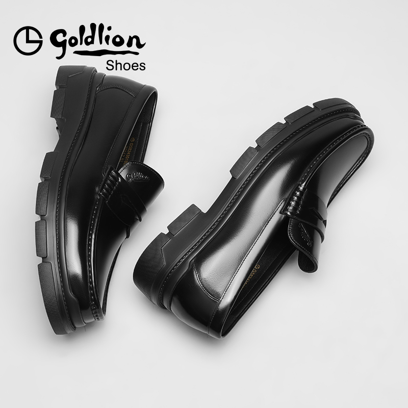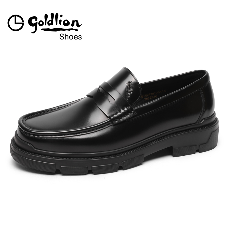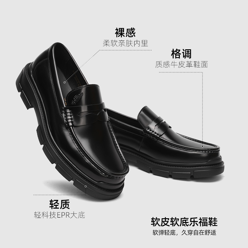 天猫金利来皮鞋秋季新款时尚一脚蹬商务真皮鞋男士厚底耐磨透气乐福鞋