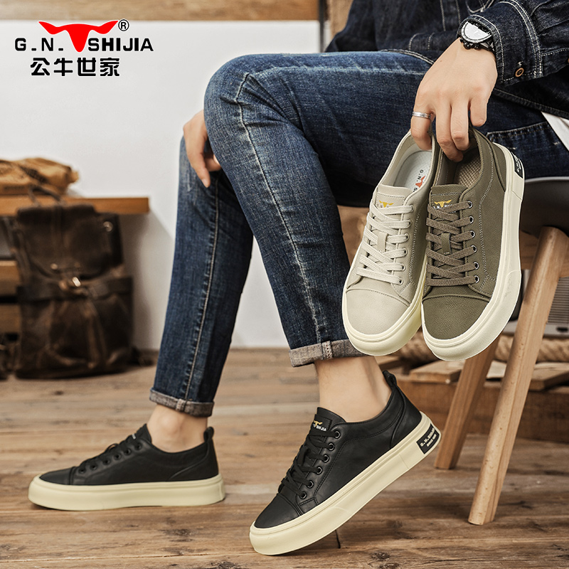 蜘蛛王男鞋2025秋季休闲板鞋真皮软底男士皮鞋时尚轻便百搭运动鞋