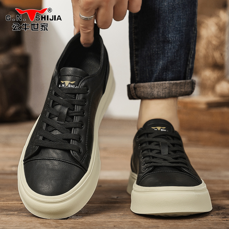 天Lee官方男鞋2025新款男士厚底面包鞋运动休闲板鞋真皮鞋子男潮鞋
