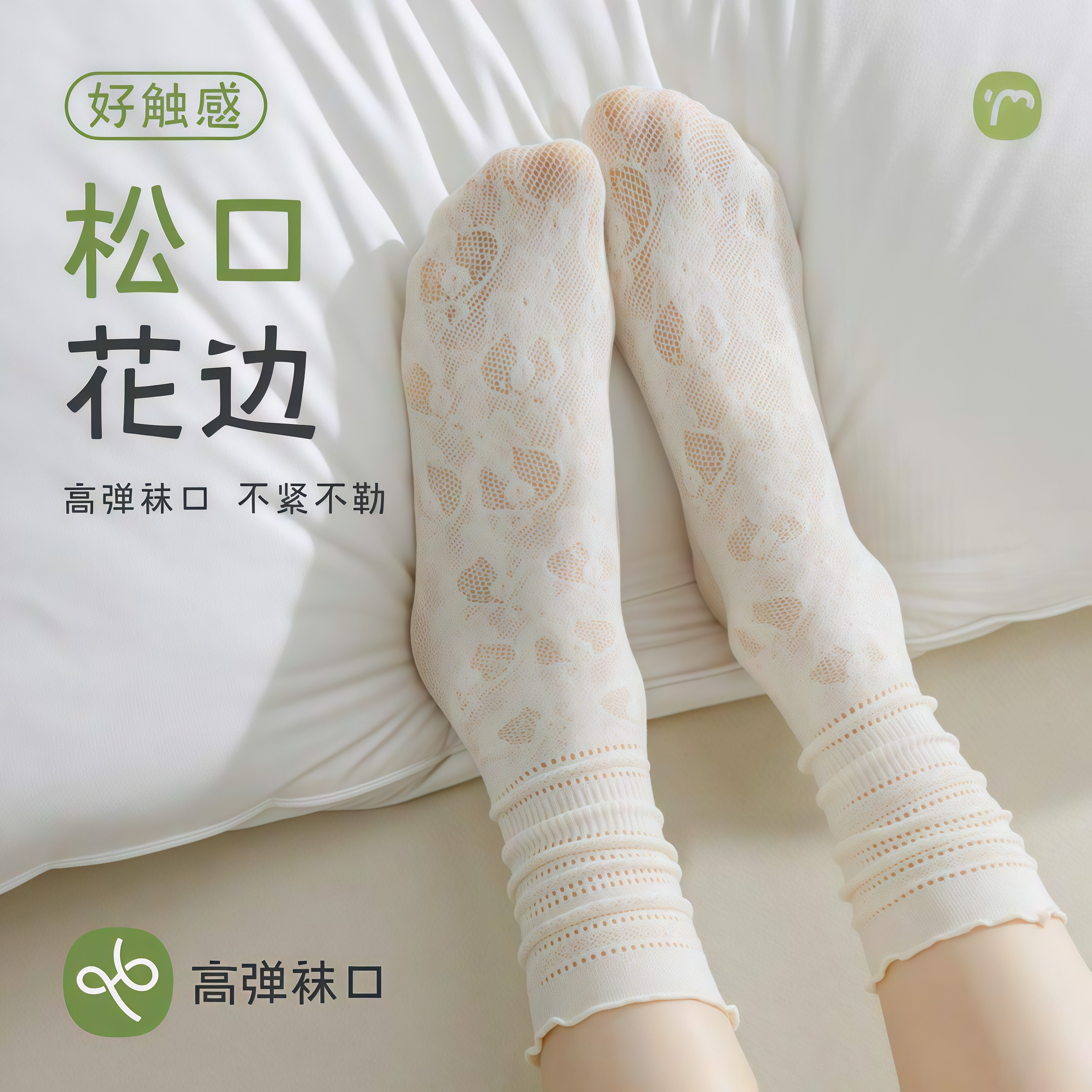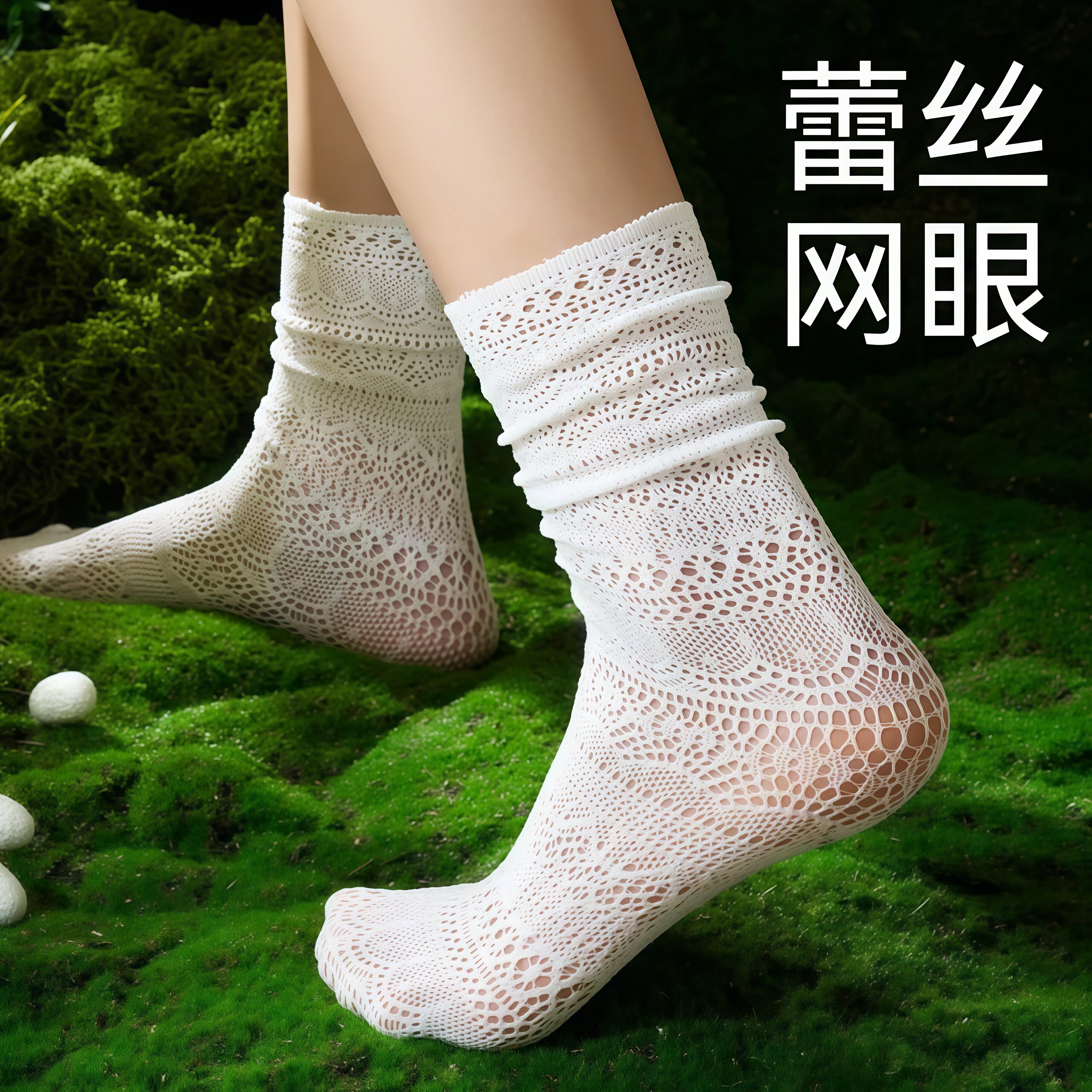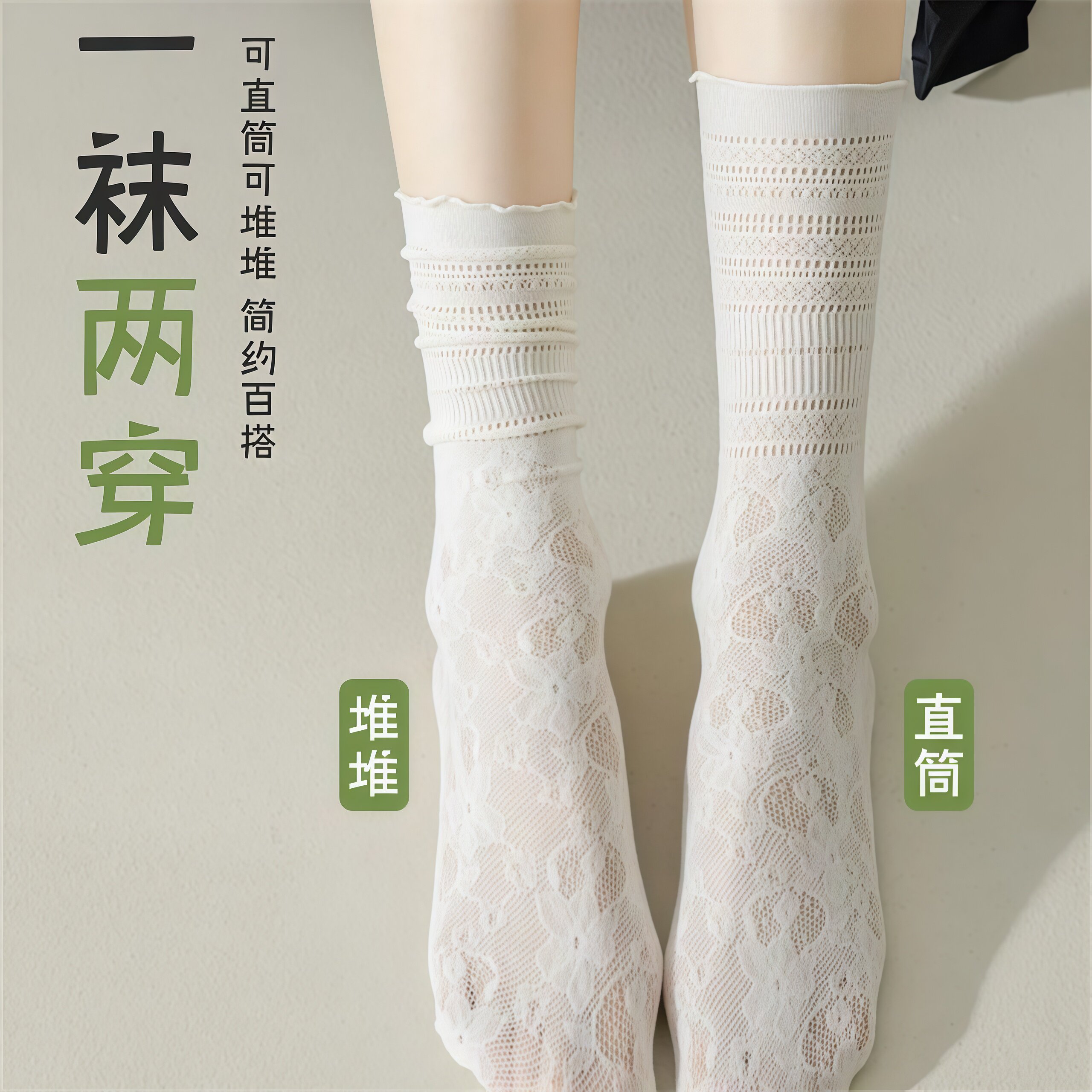 淘宝春夏季镂空白色薄款堆堆袜子夏季镂空花边配小皮鞋防臭jk中筒蕾丝