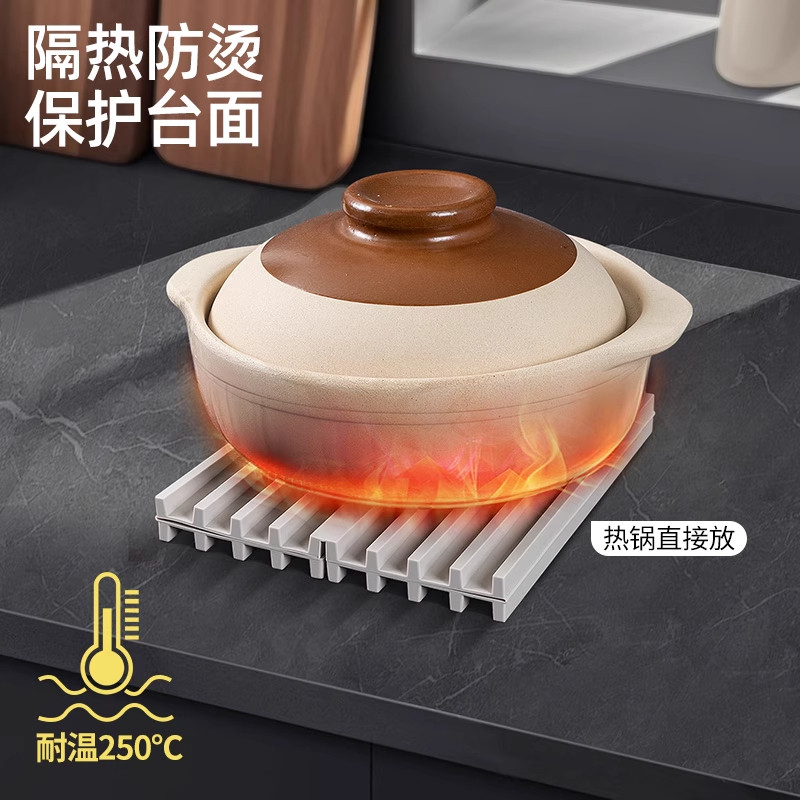 硅胶沥水垫采用食品级硅胶材质,安全无毒、耐高温,兼具防滑与柔软特性。其导流式设计搭配水槽边缘,可高效引导水流回水槽,保持台面干爽。适用于果蔬清洗后沥水、碗碟滤水干燥,也可作锅垫、隔热垫使用,有效保护台面免受高温损伤。表面凸点结构增强透气性,加速风干,避免积水滋生细菌。易清洁、可折叠收纳,不占空间,是厨房实用多功能配件。无论是日常烹饪还是餐具整理,都能提升厨房效率与整洁度,是现代家庭厨房的理想之选。