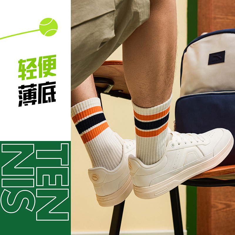 天猫安踏网球风低帮板鞋男鞋冬季新款透气小白鞋通勤百搭休闲运动鞋子