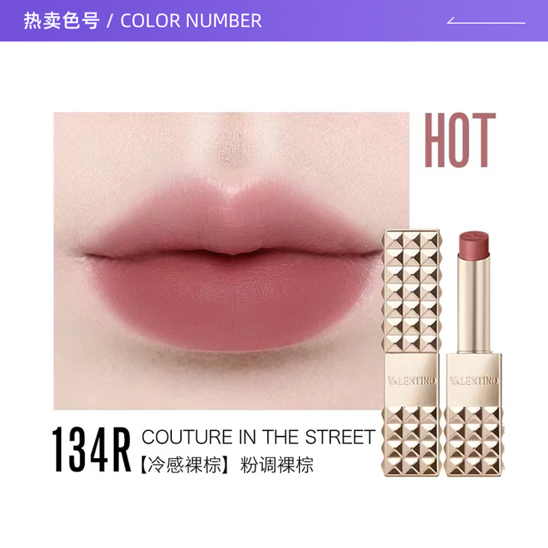 天猫【自营】华伦天奴铆钉哑光唇膏口红134R#哑光显白唇膏红茶