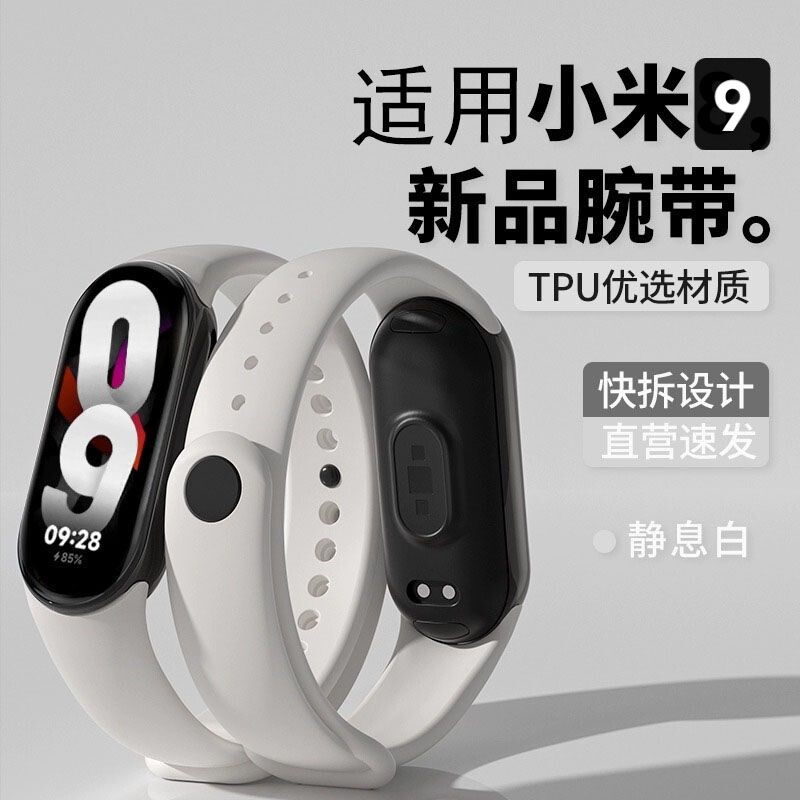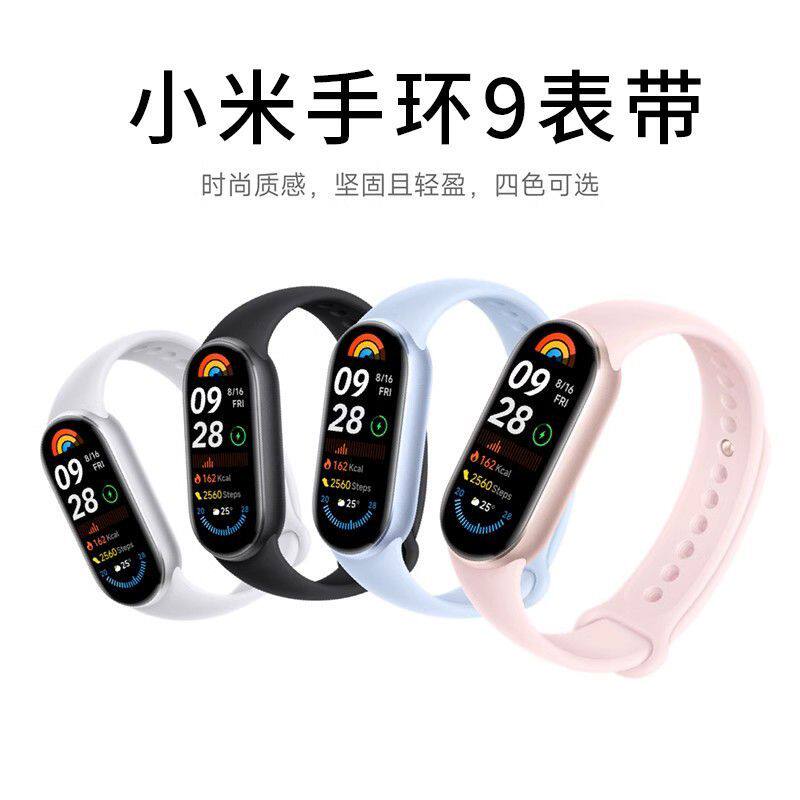 淘宝适用小米手环9表带nfc版通用智能运动手表硅胶替换腕带金属接口式