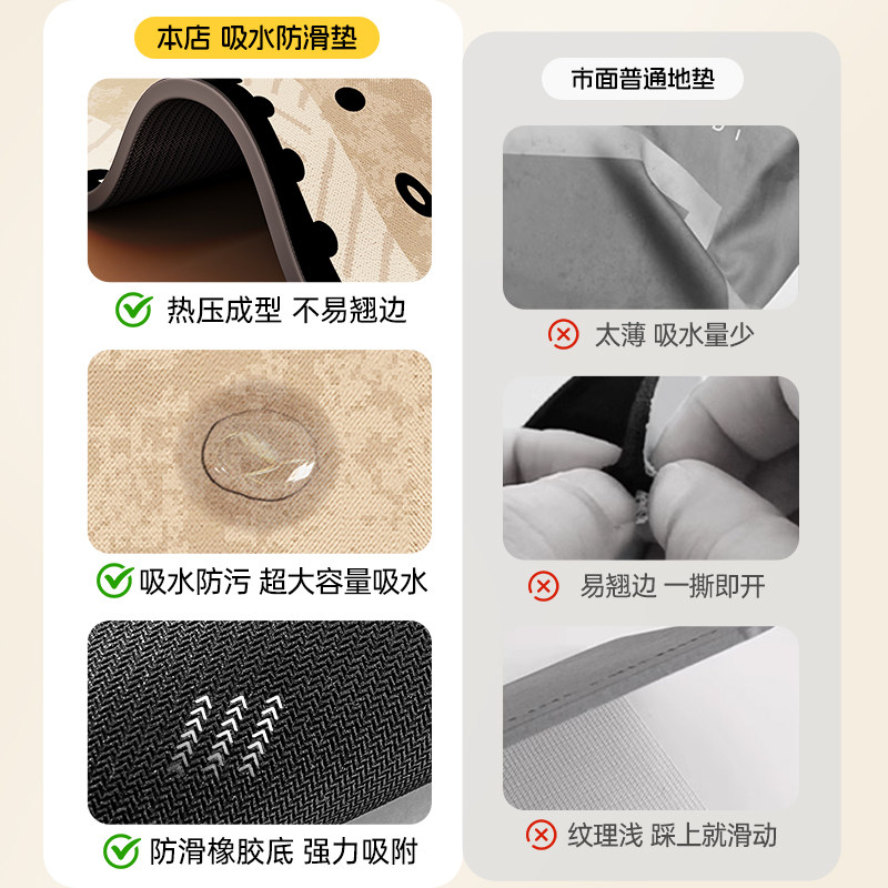 这款浴室地垫专为厨房、卫生间等潮湿环境设计,采用高品质环保材料制成,具备出色的防滑、吸水与抗老化性能。表面纹理细腻,有效增加摩擦力,防止滑倒,保障家人安全;底部防滑底纹紧密贴合地面,稳固不移位。快速吸水速干,保持地面干爽,减少水渍积聚。材质耐磨耐腐,不易变形褪色,长期使用仍如新品。适用于浴室门口、厨房操作区、洗漱台旁等多种场景,兼具实用性与美观性。易清洁打理,水洗晾干即可恢复洁净,是提升居家安全与舒适度的理想选择。