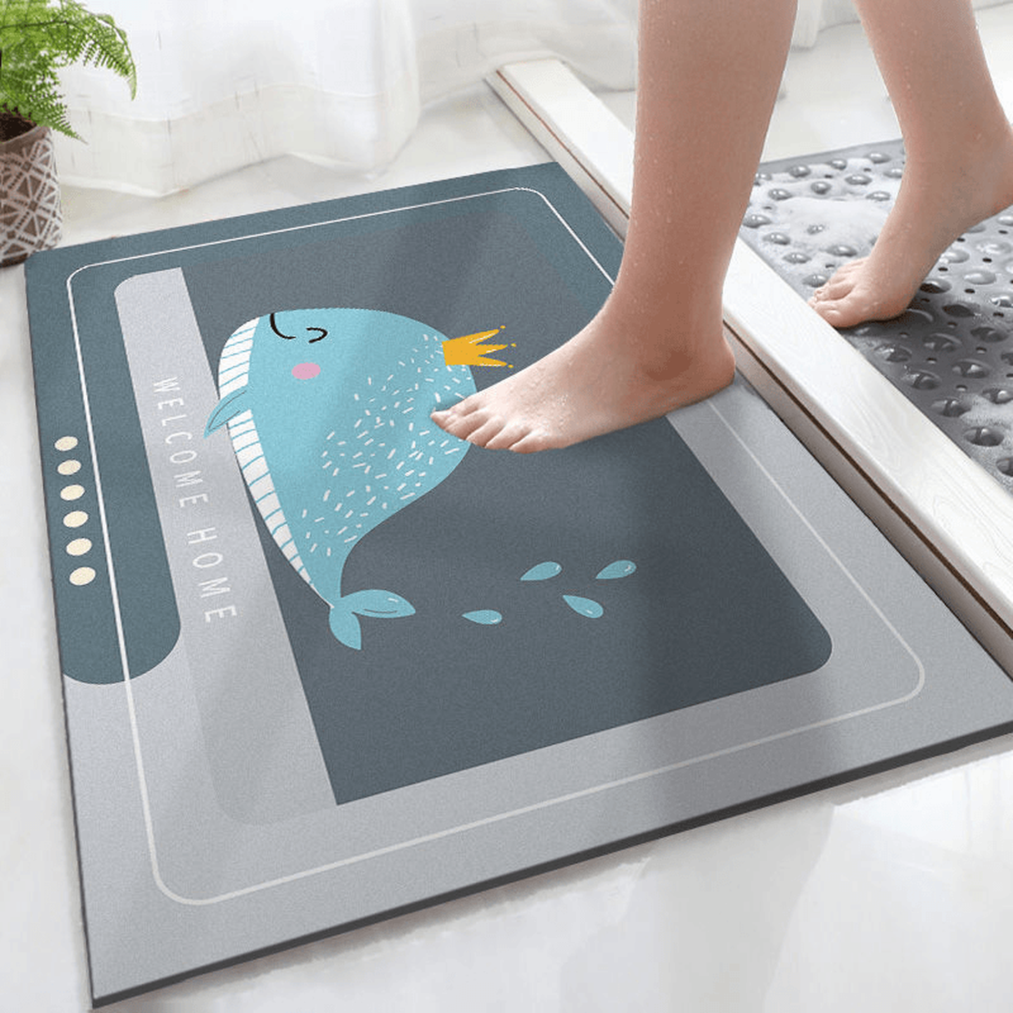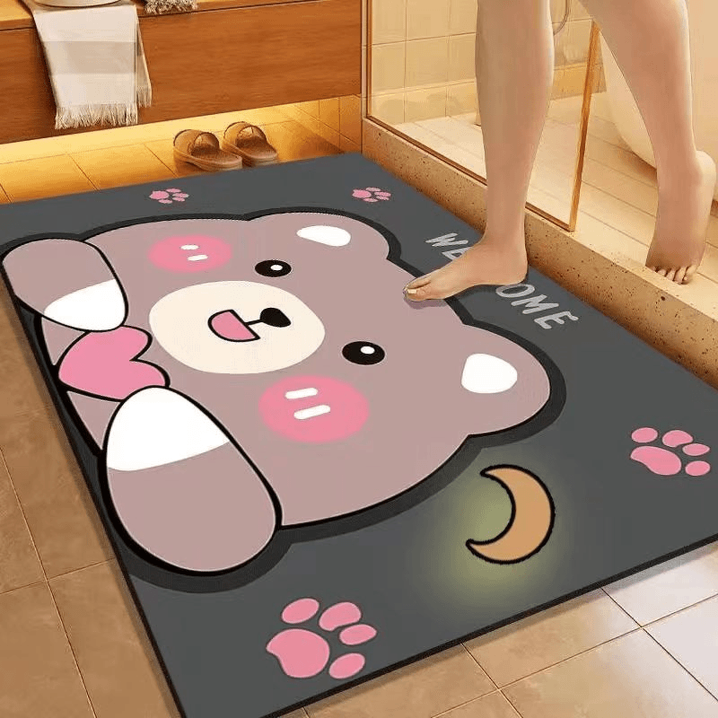 这款硅藻泥地垫专为浴室、卫生间门口设计,采用天然硅藻土材质,具备超强吸水性能,脚感干爽舒适,有效防滑,保障家人安全。其多孔结构可快速吸附水分,实现速干效果,避免积水滋生细菌。地垫表面印有可爱卡通图案,增添居家趣味,适合儿童房或家庭使用。底部防滑设计稳固贴合地面,不易移位。环保无毒、易清洁,只需清水冲洗即可恢复洁净。尺寸适中,适用于门口、浴室、厨房等多种场景,是提升家居品质与安全的实用之选。