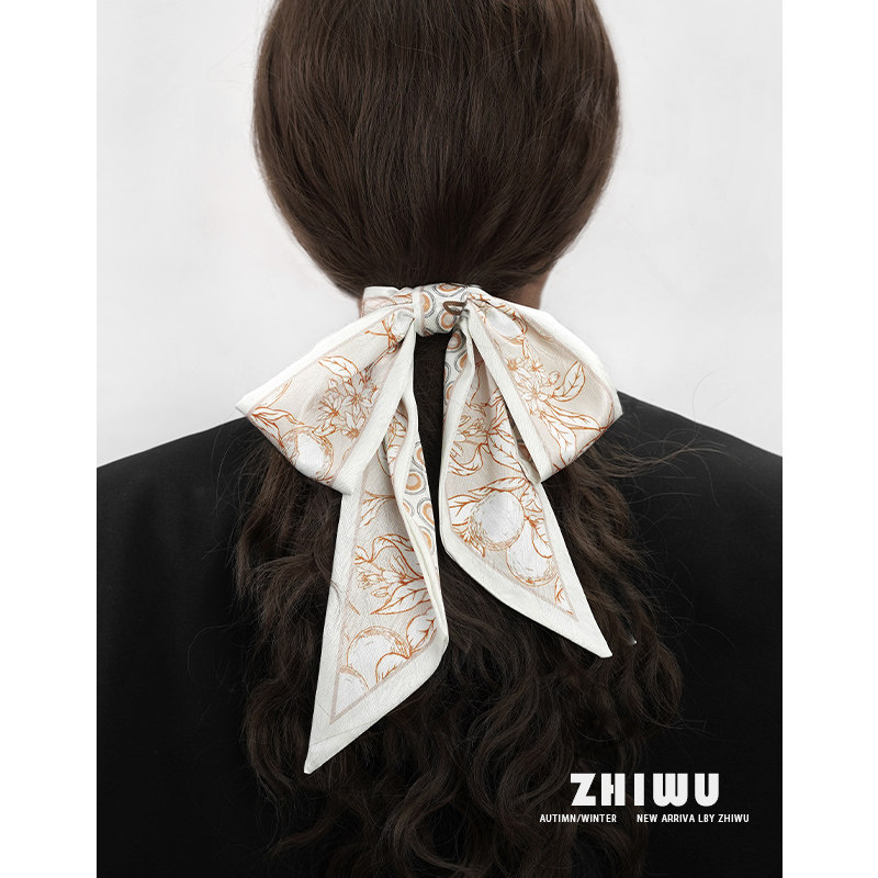 淘宝「知雾原创」手绘橘子~小长条丝巾女发带绑包包飘带搭配衬衫领巾