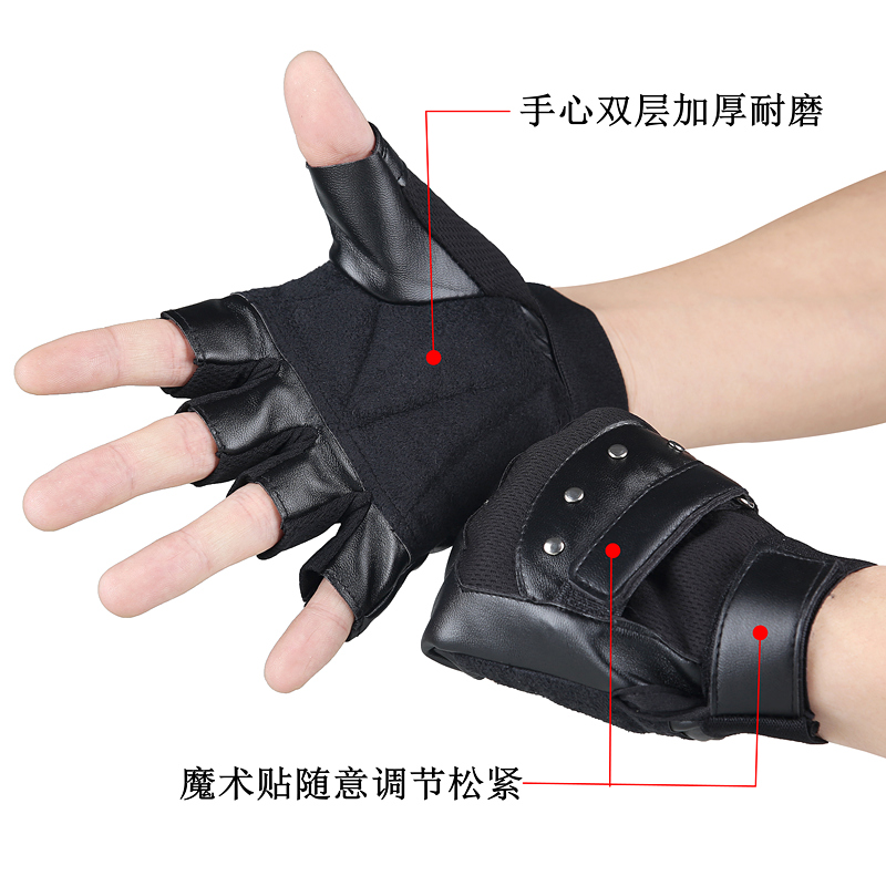 天猫羊皮半指手套男运动防滑健身户外战术铆钉露指骑行摩托车半指手套