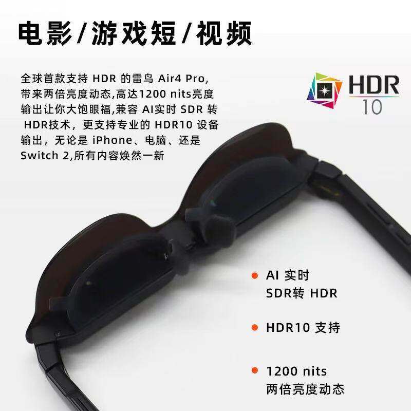 淘宝雷鸟Air4 Pro智能AR眼镜头戴电视首款HDR10眼镜高清观影XR设备