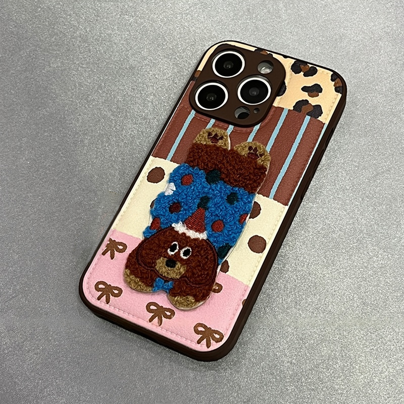 天猫皮质刺绣可爱毛绒动物适用苹果16promax手机壳iPhone14pro12小米15华为mate60k70x200p50reno11nova13荣耀100