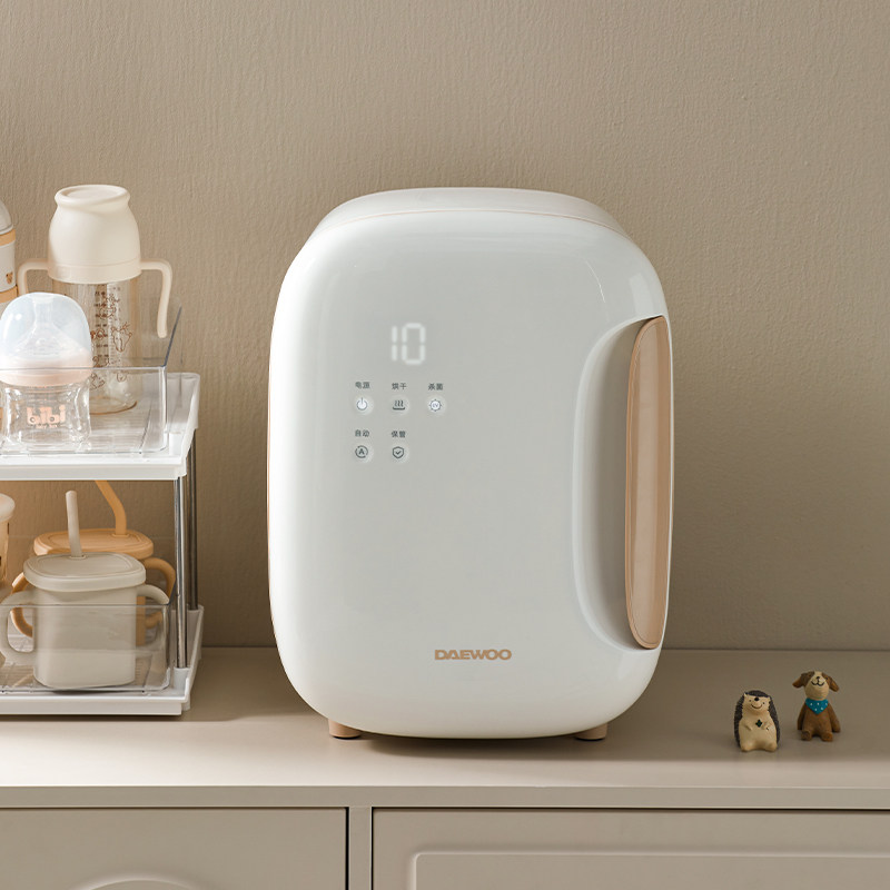 大宇婴幼儿奶瓶消毒器是一款专为宝宝设计的家用二合一消毒柜,集紫外线消毒与热风烘干功能于一体。采用安全高效的UVC紫外线杀菌技术,可深度杀灭奶瓶、奶嘴、辅食工具等用品上的细菌与病毒,杀菌率高达99.9%,守护宝宝健康。内置PTC恒温烘干系统,快速去除水分,避免二次污染。双层大容量设计,可容纳多个奶瓶及配件,满足日常使用需求。操作简单,一键启动,智能定时,安全童锁设计更贴心。机身采用食品级材质,无毒无味,使用更安心。大宇消毒器以高效、便捷、安全为核心,为新手爸妈提供省心可靠的育儿助手,是宝宝健康成长的理想选择。