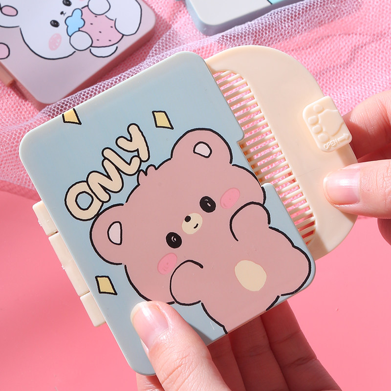 淘宝创意随身带梳子小镜子套装户外便携镜梳一体折叠化妆镜迷你圆镜子