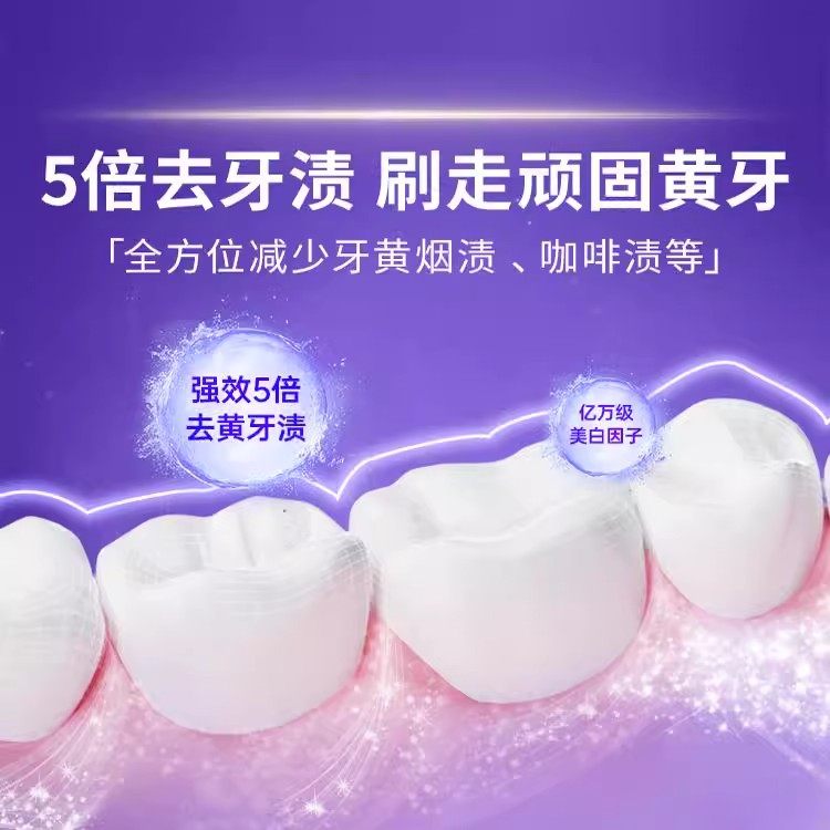 【澳洲爆款】牙齿素颜霜V34紫牙膏,风靡全球的即时美牙神器!采用创新紫色调色科技,利用光学互补原理,一抹中和牙齿黄调,瞬间提亮牙色,打造自然“牙间滤镜”效果。V34紫色膏体富含温和研磨成分与活性美白因子,能快速分解外源性牙渍,如烟渍、咖啡渍、茶垢等,深层清洁同时不伤牙釉质。无需等待,刷牙30秒即可见证牙齿明显变亮,适合拍照、约会、面试等紧急提亮场合。澳洲原装进口,安全可吞咽配方,温和无刺激,孕妇敏感肌亦可安心使用。每天使用,持续改善牙色,让你笑容更自信,轻松拥有明星同款亮白齿光!