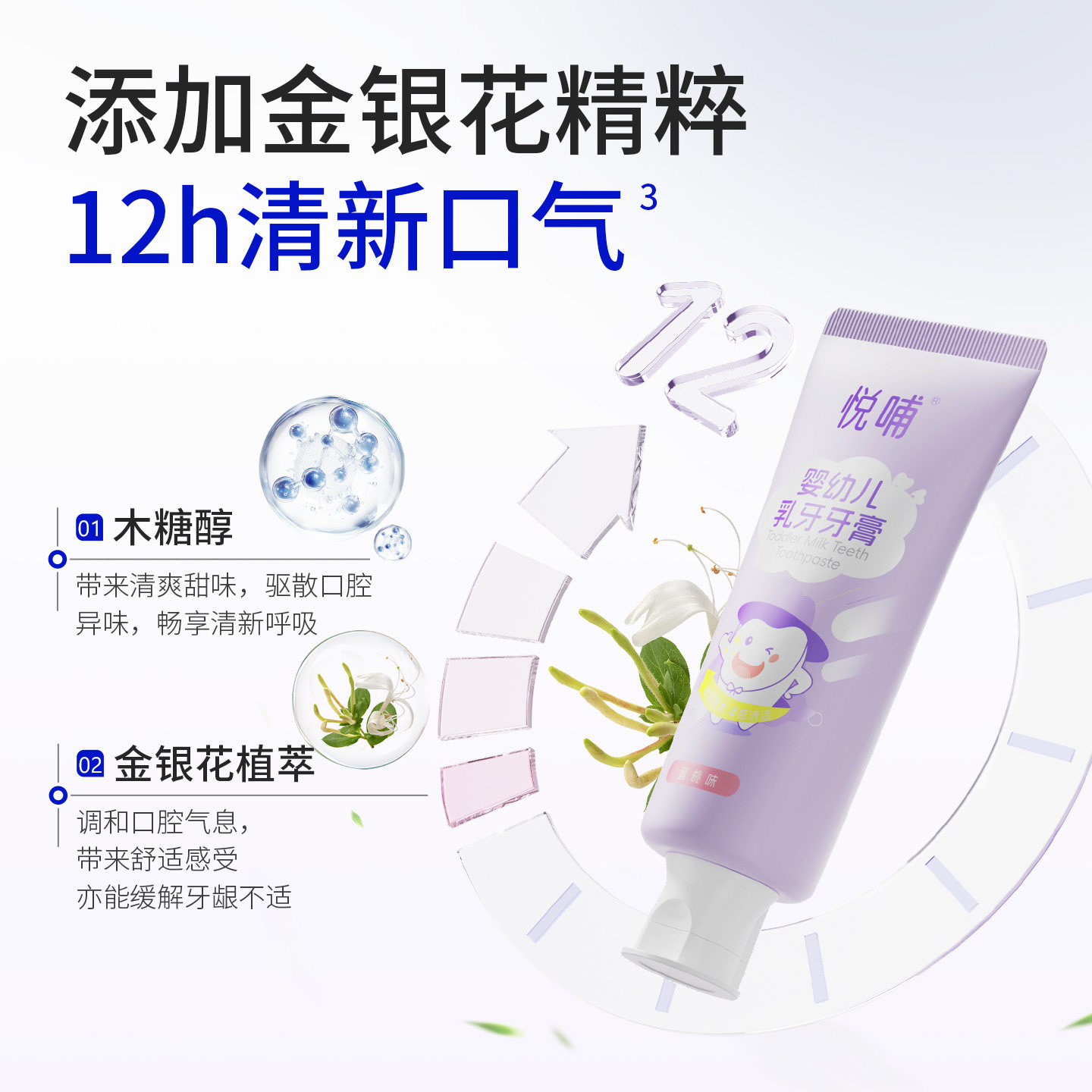悦哺婴幼儿乳牙牙膏专为0-3岁宝宝精心设计,采用温和无刺激的配方,不含氟化物、SLS发泡剂及人工香精,安全可吞咽,让家长更安心。特别添加天然木糖醇,有效抗糖护齿,帮助抑制口腔细菌滋生,预防乳牙龋齿。膏体细腻柔滑,口感清甜不辣口,宝宝更易接受,轻松培养刷牙好习惯。低泡配方温和清洁,呵护宝宝娇嫩口腔黏膜,从第一颗乳牙开始守护口腔健康。悦哺坚持天然安心理念,是新手爸妈信赖的婴幼儿口腔护理首选。每天早晚使用,为宝宝筑起健康护齿第一道防线。