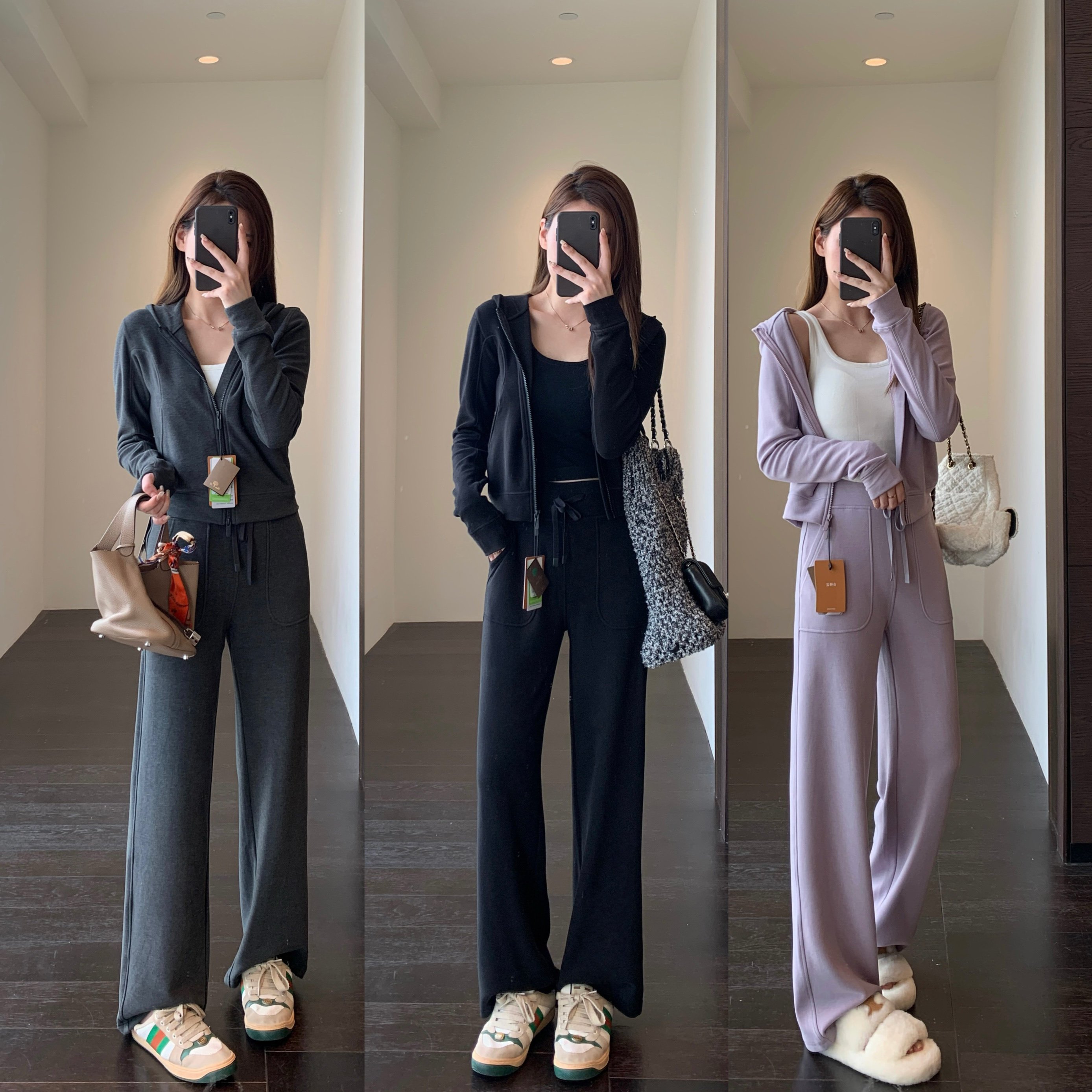 AMRUU◆神仙面料保暖发热羊毛混纺卫衣直筒阔腿裤套装,专为秋冬打造,融合时尚与舒适。采用高品质羊毛混纺材质,具备优异保暖发热性能,轻盈柔软,贴身不臃肿。卫衣设计简约大方,落肩剪裁慵懒随性;搭配高腰直筒阔腿裤,修饰腿型,拉长比例,轻松穿出高级感。整体套装色调温柔百搭,适合日常通勤、休闲出行等多种场合。抗起球、不易变形,久穿如新。AMRUU以匠心工艺诠释女性冬日优雅,是追求品质与温度并存的不二之选,让你在寒风中也能自在绽放魅力。