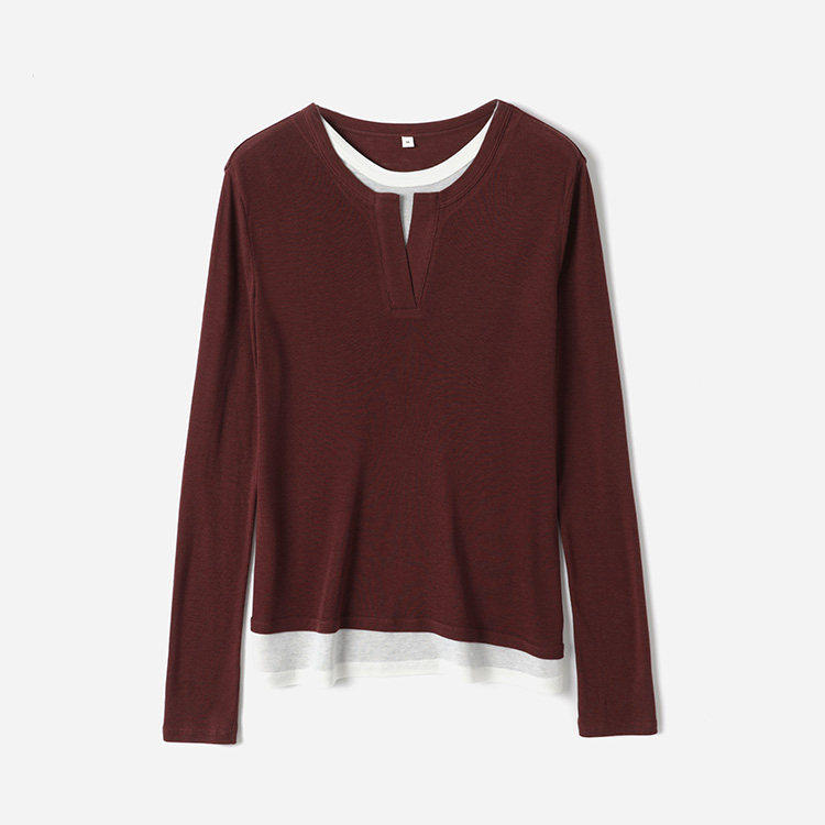淘宝*WTX08095 茉莉雅集 绵软舒适莱赛尔羊毛撞色假两件圆领长袖T恤女