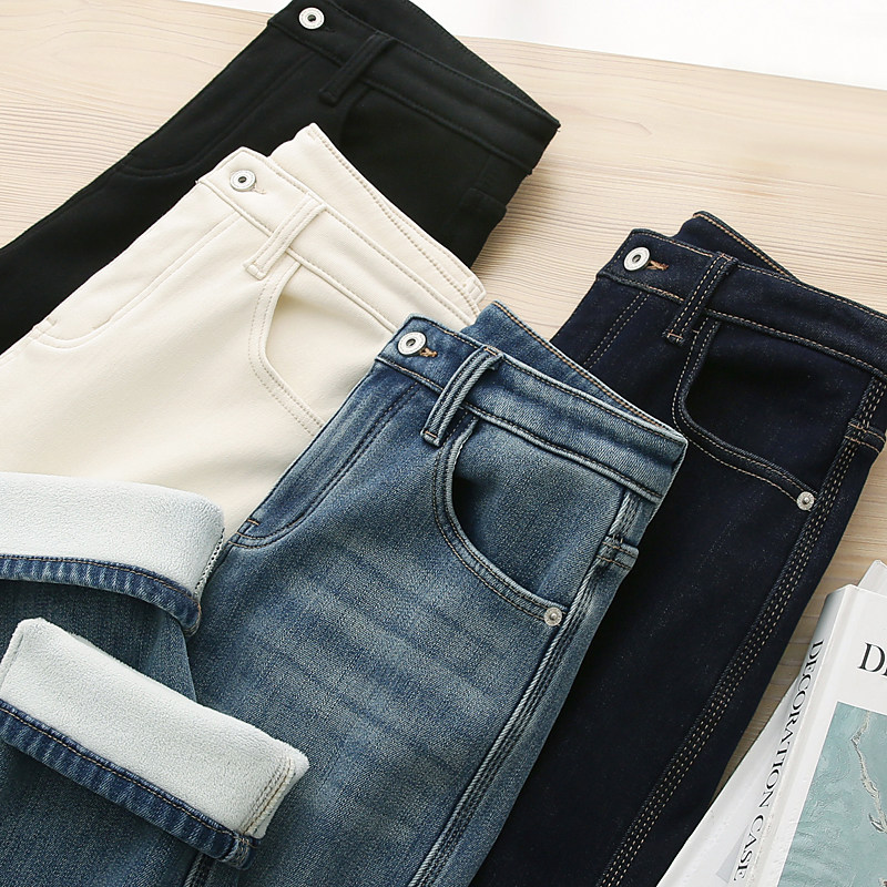 淘宝热牛奶般温暖舒适!关键还显瘦!加绒加厚小直筒九分牛仔裤女秋冬