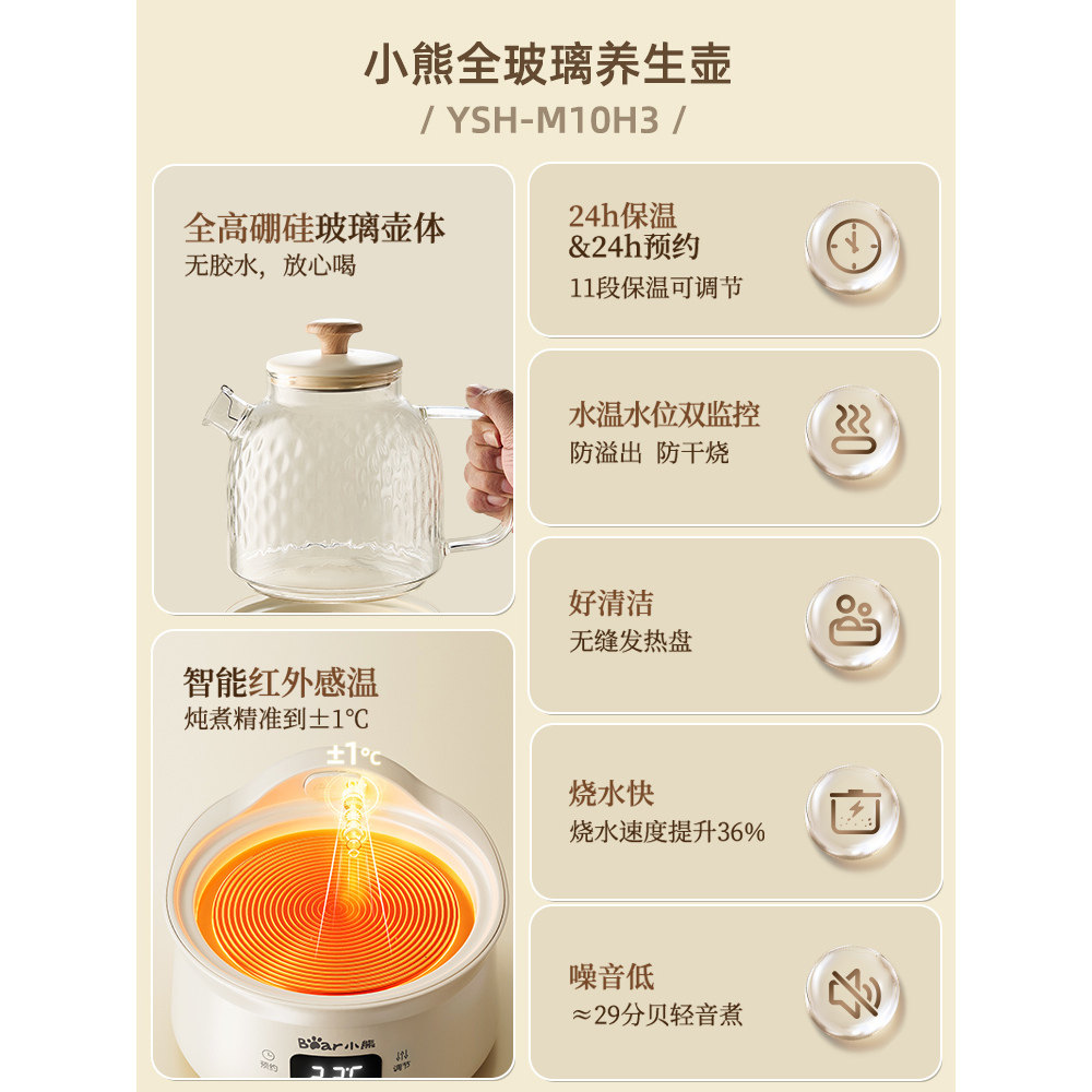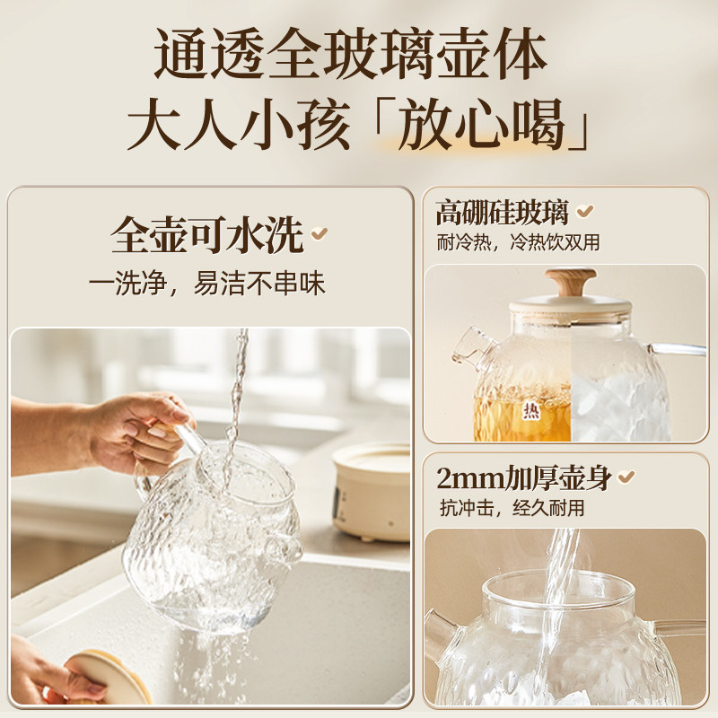 小熊养生壶家用多功能恒温煮茶器办公室小型玻璃煮茶壶花茶烧水壶