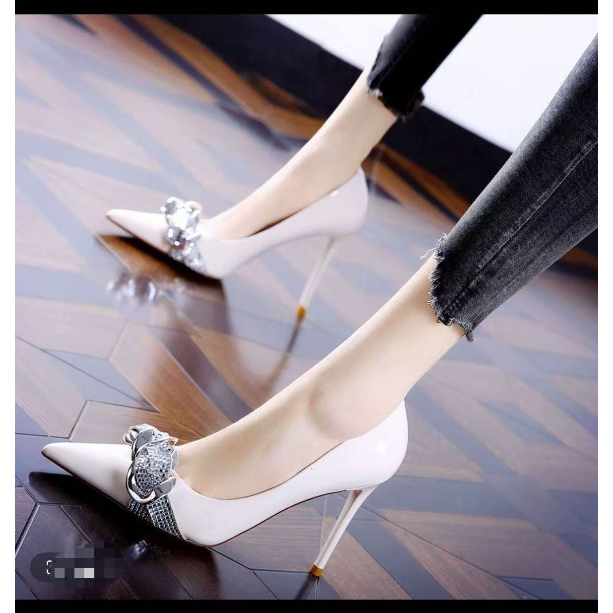 小众婚鞋新娘鞋秀禾婚纱两穿不累脚高级感水晶鞋细跟高跟鞋女单鞋