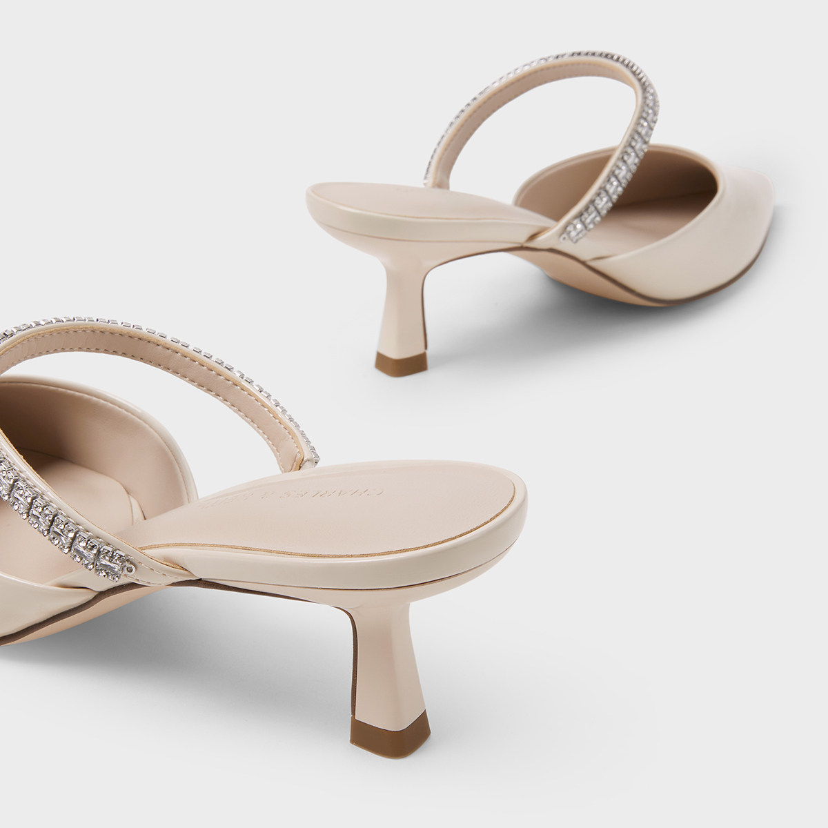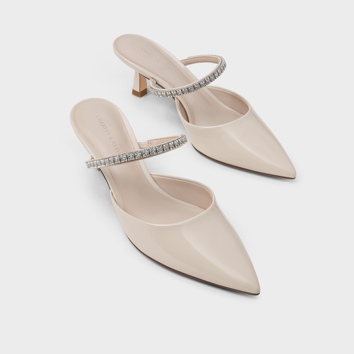 天猫CHARLES&KEITH春季女鞋CK1-60920353亮钻一字带尖头高跟穆勒拖鞋