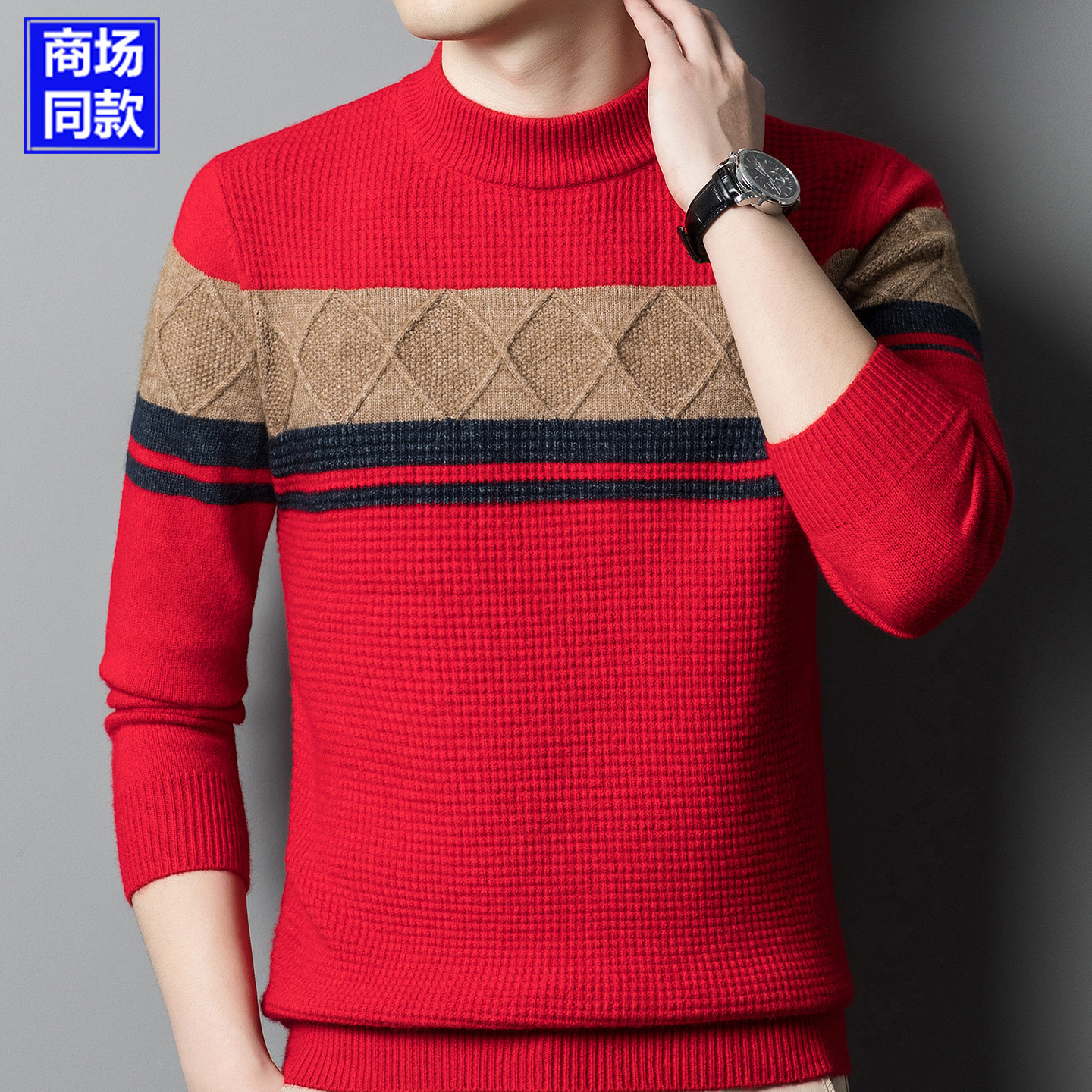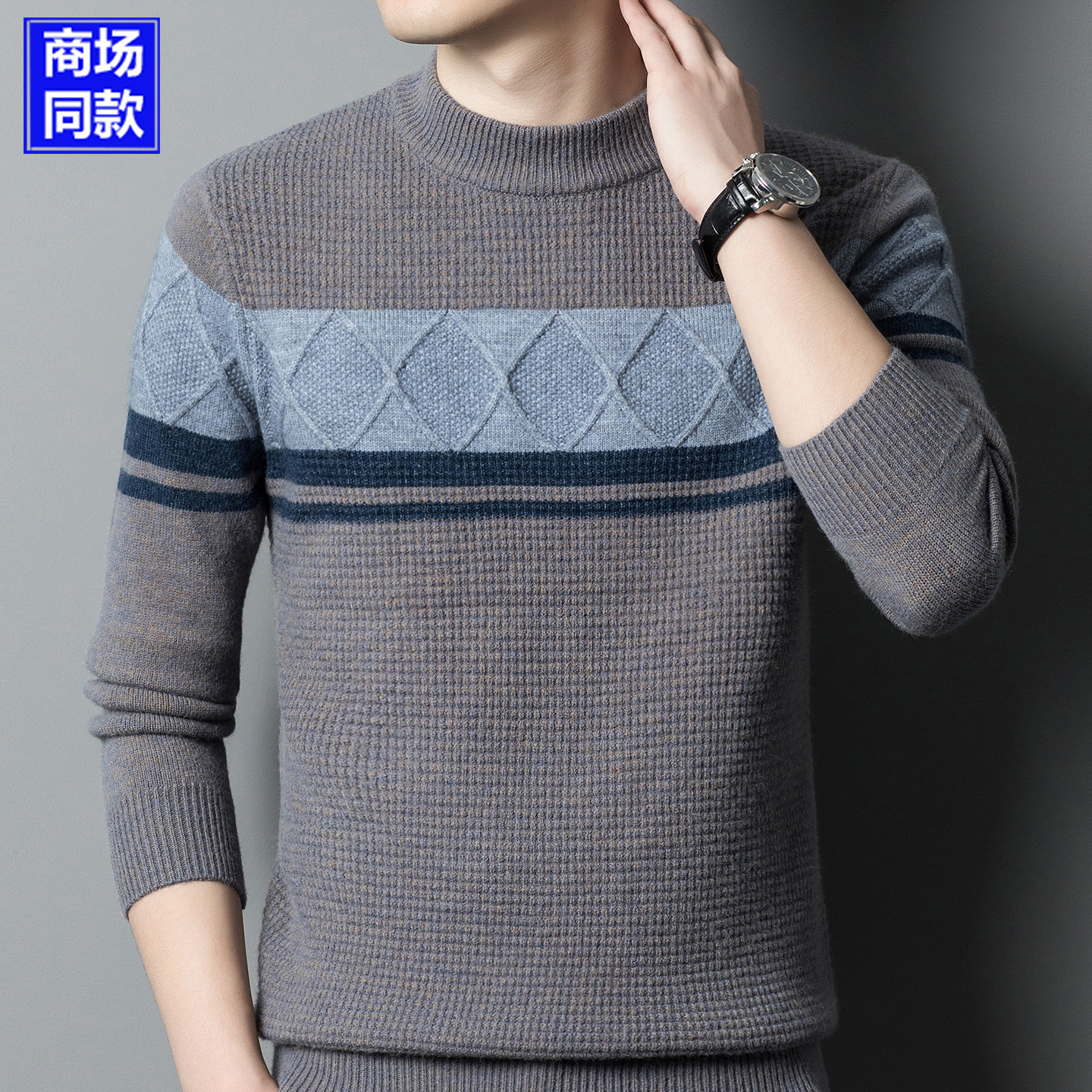 淘品牌男装(正品大牌)59羊毛+8羊绒秋冬厚款男士弹力毛衣男款针织衫