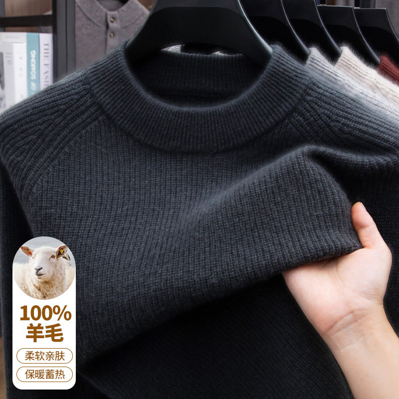 恒源祥羊毛衫男100纯羊毛打底针织衫秋冬中年男士半拉链羊绒毛衣